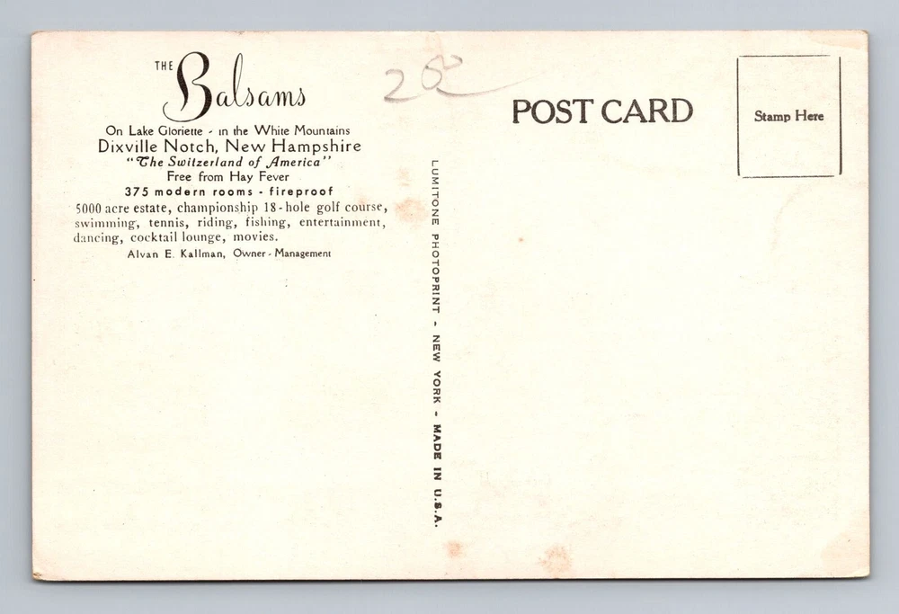 Country/Region of Manufacture: Unknown Original/Licensed Reprint: Original City: Dixville Notch Theme: Cities & Towns Subject: Cities & Towns Material: Paper Country: USA Size: Standard (5.5 x 3.5 in) Type: Printed (Lithograph) Era: Vintage Region: New Hampshire Postage Condition: Unposted Unit of Sale: Single Unit