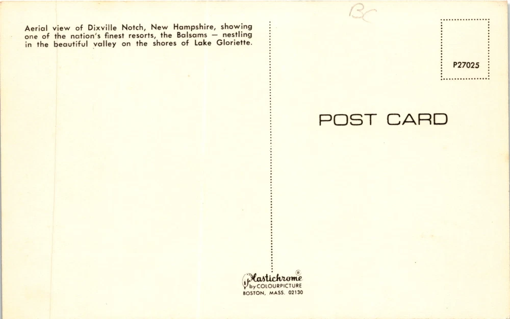 MAKE AN OFFER. THE MORE YOU BUY THE BETTER DEAL I WILL ACCEPT The postcard depicts an aerial view of Dixville Notch, a picturesque region in New Hampshire. It showcases The Balsams, a renowned resort nestled in the valley by the shores of Lake Gloriette. The Balsams is known for its luxurious accommodations, stunning natural surroundings, and various recreational activities.
