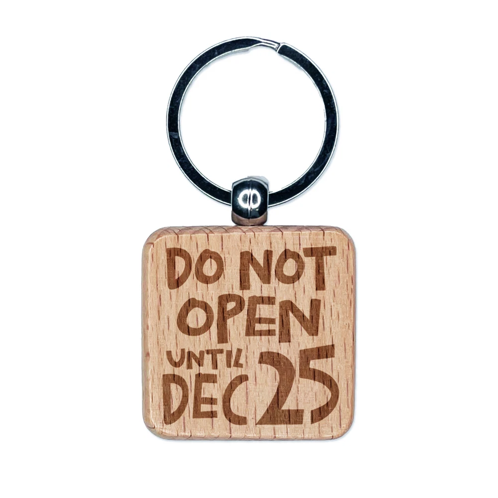 Do Not Open Until Dec 25 Christmas Engraved Wood Square Keychain Tag Charm