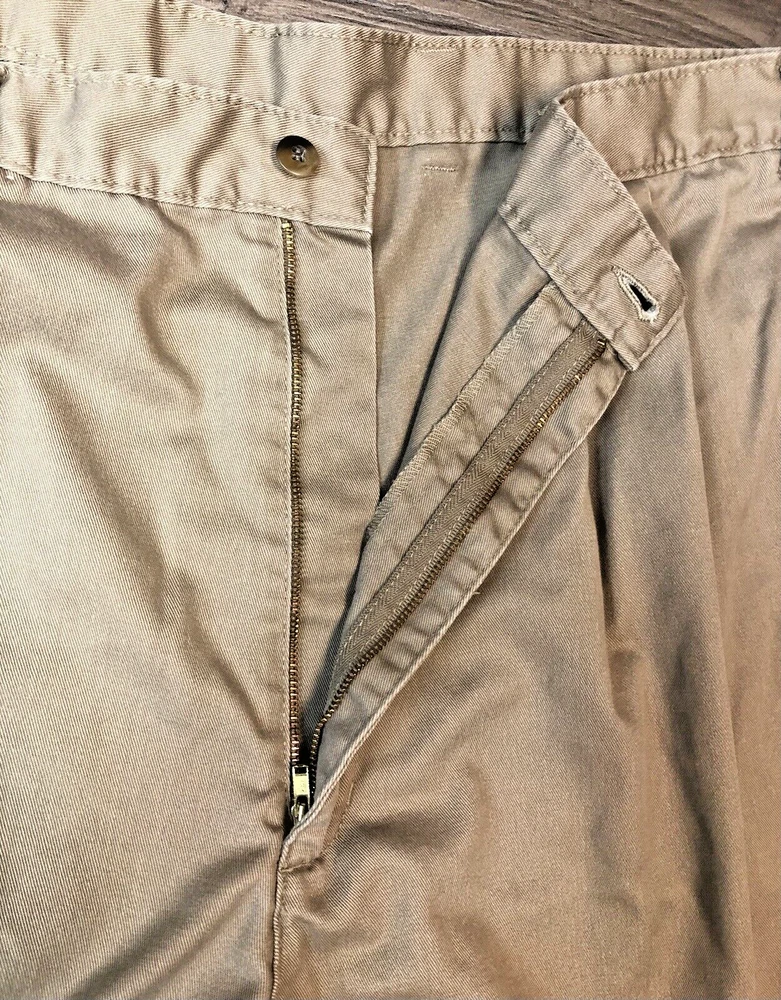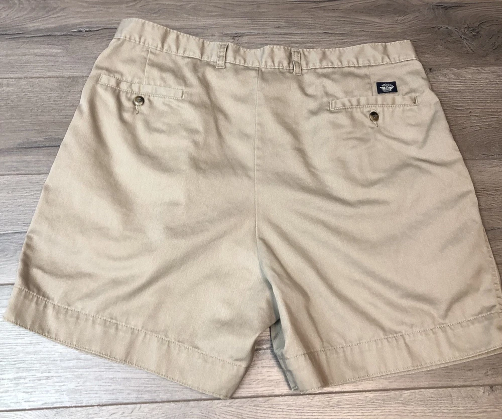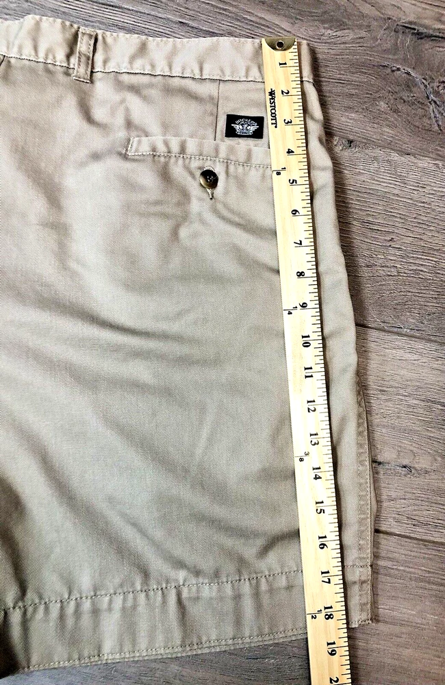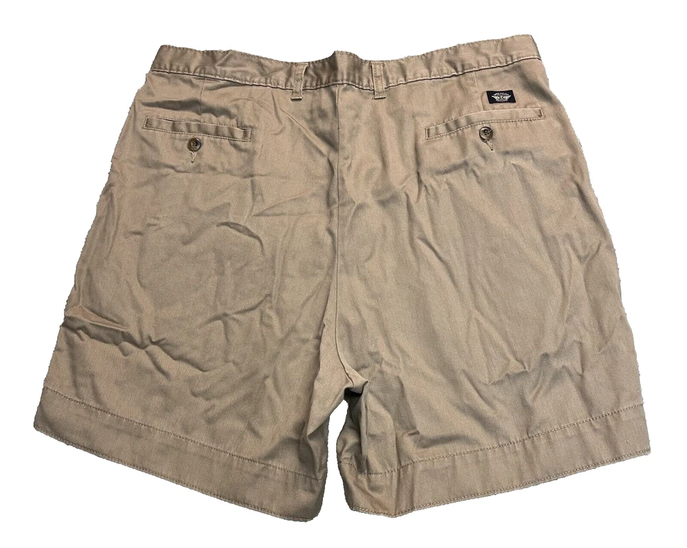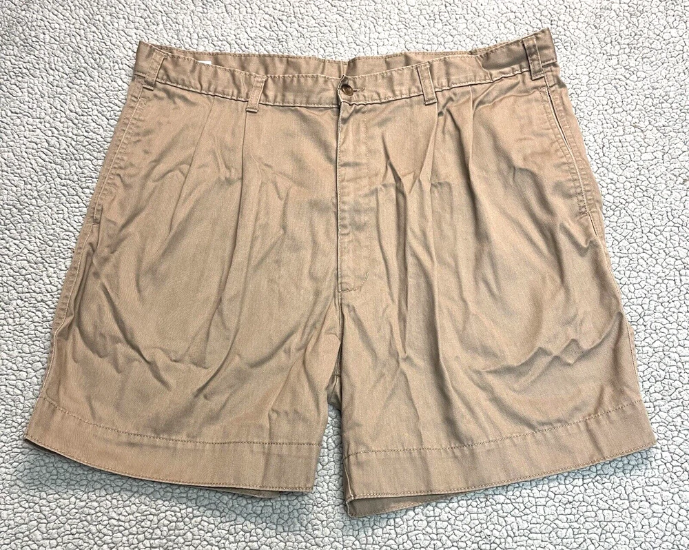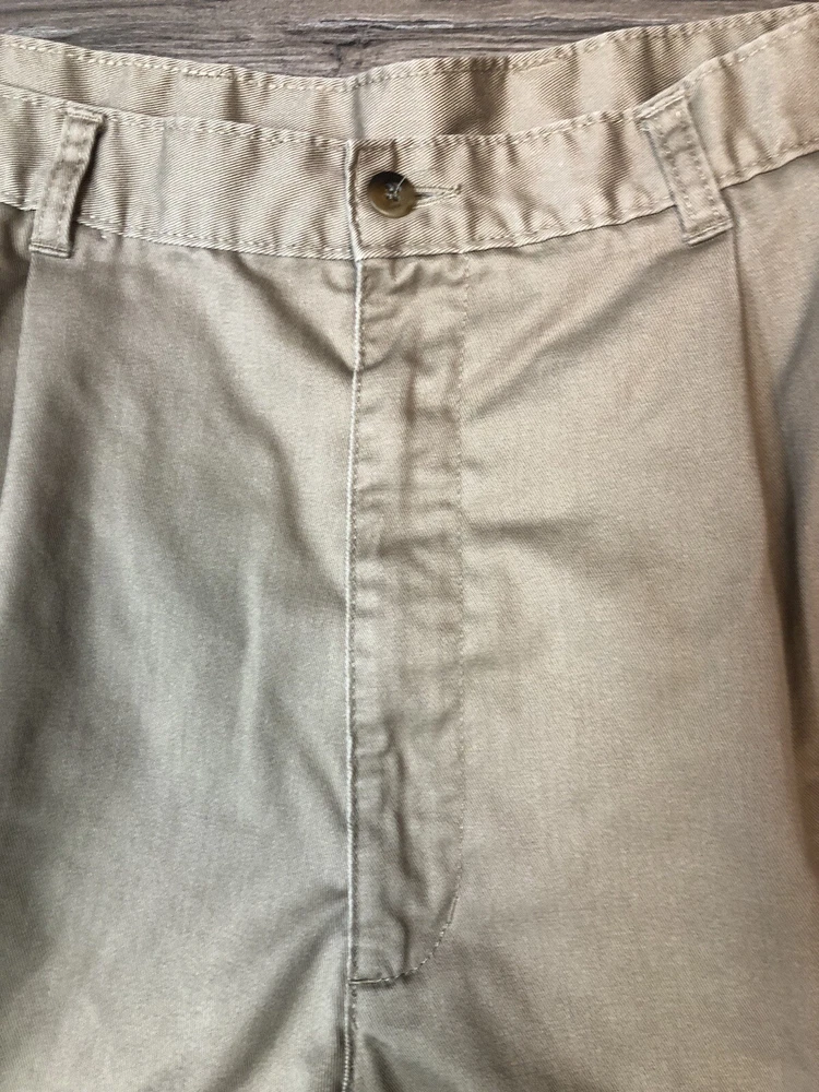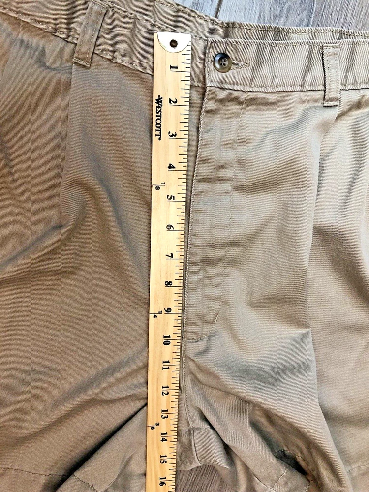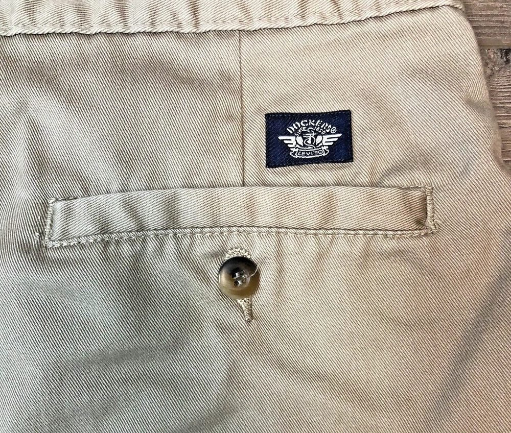 Tan Khaki Chinos Pockets Casual Levi’s Cotton Dockers Shorts Men’s Size 40 Pants Pleated Mild stretch to material but not at waist The darker color in pictures 2 & 3 is the truer color CONDITION Preowned Good condition See pictures for details and measurements Please contact us with any questions or concerns. Thanks!