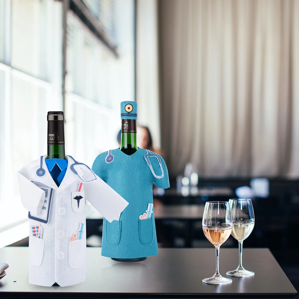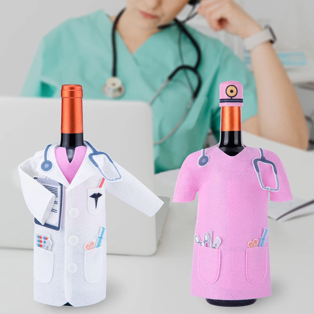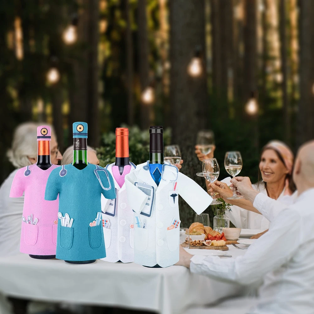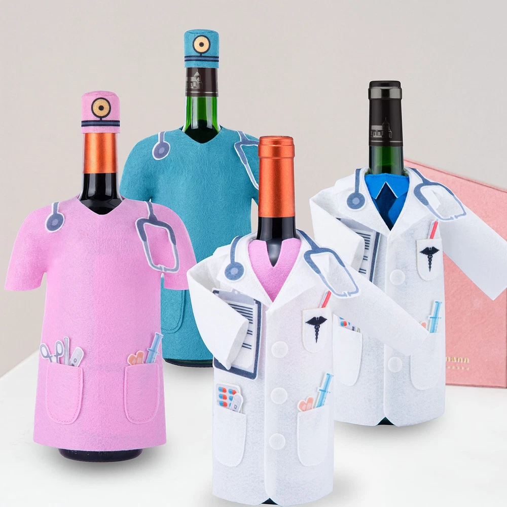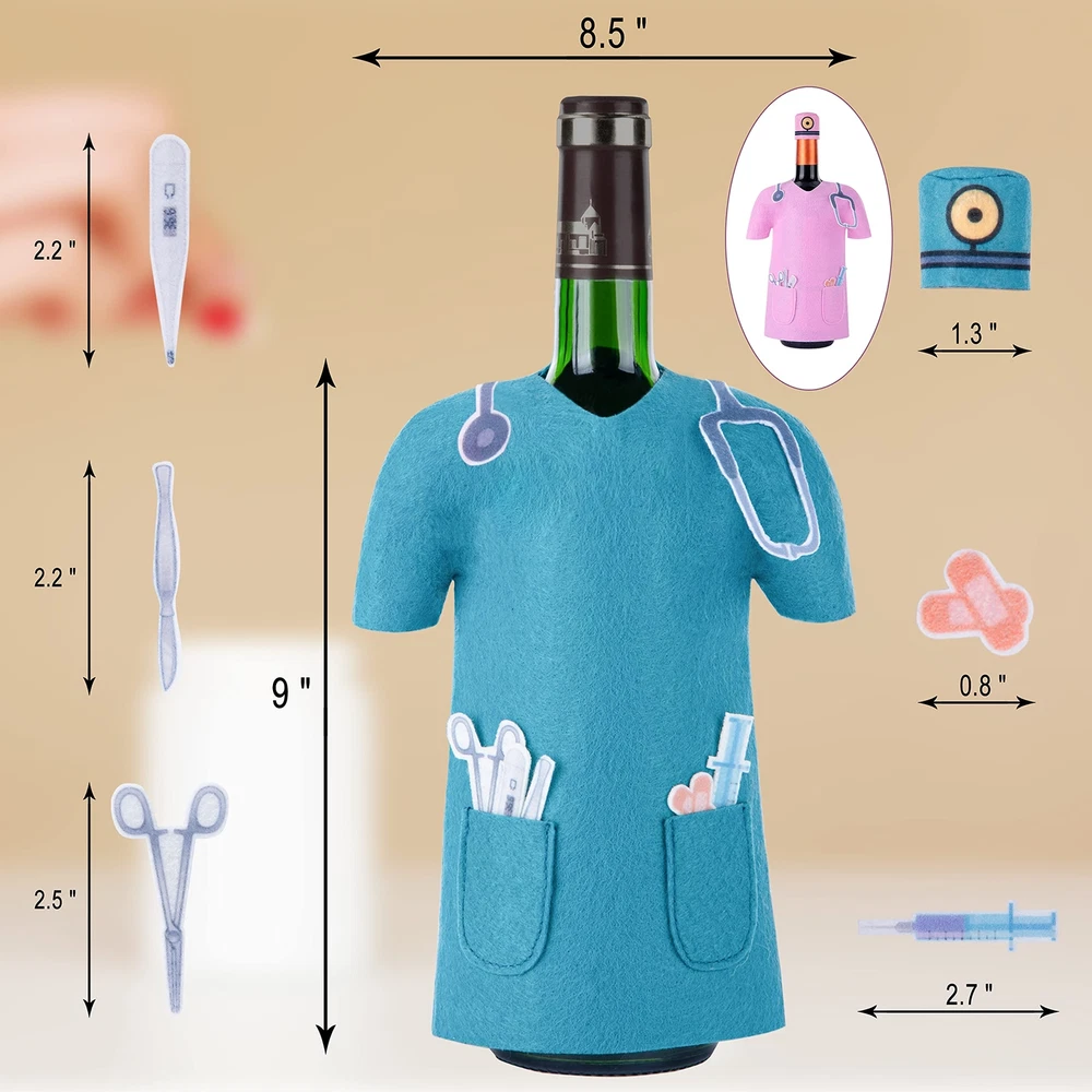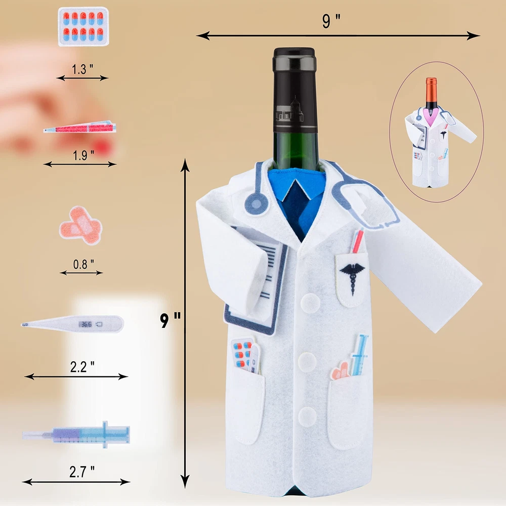 Package of Doctors Gifts included: 1 x Doctor White Bottle Wine Coat Cover for Men 1 x Doctor White Bottle Wine Coat Cover for Women 1 x Pink Scrub Wine Bottle Coat Cover for Doctor and Nurse 1 x Green Scrub Wine Bottle Coat Cover for Doctor and Nurse Doctor White Wine Bottle Cover also contains the following adorable Doctor Accessories: 1 x Pen 1 x Stethoscope 1 x 1 x 1 x Thermometer 1 x Bandage 1 x Clipboard Scrub Wine Bottle Coat Cover also contains the following adorable Doctor or Nurse Accessories: 1 x Cap 1 x Stethoscope 1 x Scissor 1 x 1 x Thermometer 1 x Bandage 1 x Surgical Scapel Doctor Gifts for Women: Our Doctors Nurses Gifts set includes White Doctor Bottle Wine Coats and Scrub Wine Bottles Cover. This is a perfect Doctors Day Gifts Ideas for Doctors and Nurses. The best Doctors Day Gifts, Birthday Gift for Doctor, Retirement Gifts for Doctors, Funny Gifts for Nurse and Doctor, Thank You Gifts for Doctor or Appreciation Gifts for Doctor Gifts for Doctors Male: This Doctors Gifts set included White Wine Coat Covers is the best Doctor Presents for a Great Doctor, especially for Doctor Graduation Gift, Thank You Gift for Doctor, Gifts for Men Doctor or Retirement Gifts for Doctors.Also,Gifts for Nurses, Assistant Gifts, Pharmacist Gifts, Physician Assistant Gifts, Optometry Gifts Veterinarian Gifts, Physical Therapist Gifts for Women or Men, or gifts for any Practitioner. Nurse Gifts for Women: This Doctor Gifts set also included Scrub Bottle Wine Covers for Doctors and Nurses. An Appreciation Gift for doctor and Nurse, Doctor Day Gifts,Gifts for Students, Birthday Gifts for Doctors or Future Doctor Gifts Match Day Residency: The Doctor Gift Wine Bottle Covers are tailor-made designed alongs with cute Doctor Accessories such as Stethoscope, Bandage, , Pen, , Thermometer. Our Doctor Bottle Wine Coat Gift bag fits most size of wine bottle. Sure this Doctor Nurse Gifts is of the most Funny Gifts for Doctor Gifts for Nurses: If for any reason you are not satisfied with our Doctor Party Decorations Gifts, please us freely for a full no questions asked and hassle free