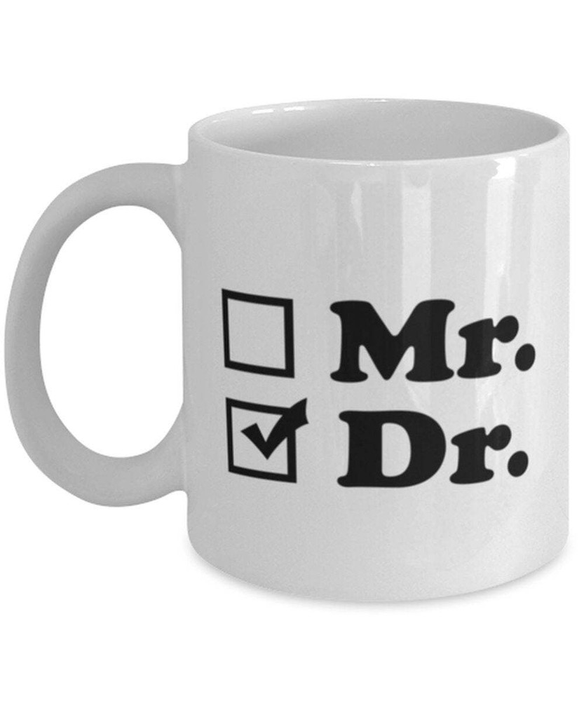 Doctor Graduation Mug Mr Dr Graduate Medical School Doctor Graduate Mug For Him Product Details.. This high quality 11oz. ceramic white mug has a premium hard coat that provides crisp and vibrant color reproduction sure to last for years. Perfect for all hot & cold beverages. The highest quality printing possible is used. It will never fade no matter how many times you wash it. Material: 100% Ceramic. Print both sides. Dishwasher and Microwave Safe. High Gloss + Premium White Finish. Printed in the U.S.A. Personalized & Custom. We support personalized and custom mug to add custom, when placing an order, you can add notes to the "order note" in shipping address section. Also you can contact us directly via message. Shipping Info. Ready to ship in 1 to 2 business days, All products are made-to-order and proudly printed in the United States. Shipped by USPS and DHL, You will receive your order in 5-7 days. Replace & Refund. All products are defective during shipping broken, chipped will be replaced free of charge. You are not satisfied with the product, we will refund 100% money to you. If any other issues arise, please do not hesitate to message, we would be more than happy to assist you.
