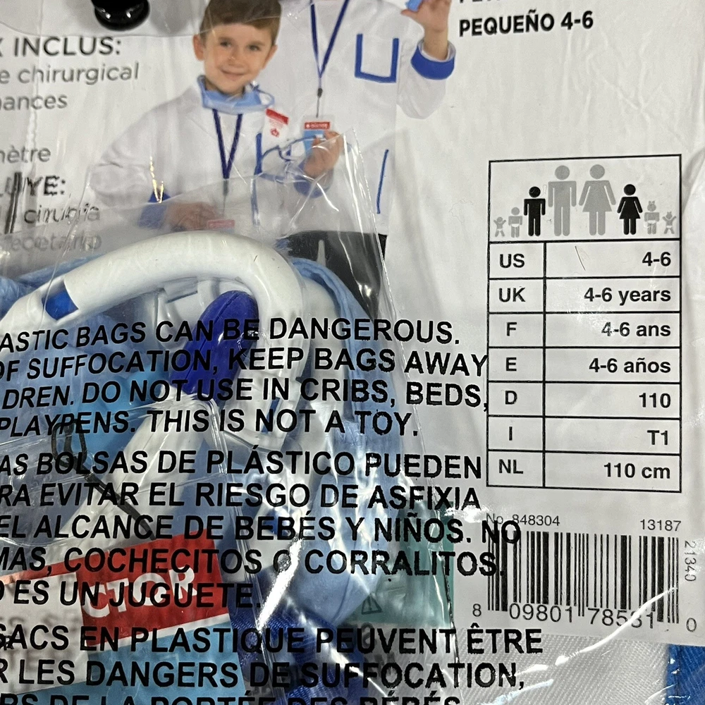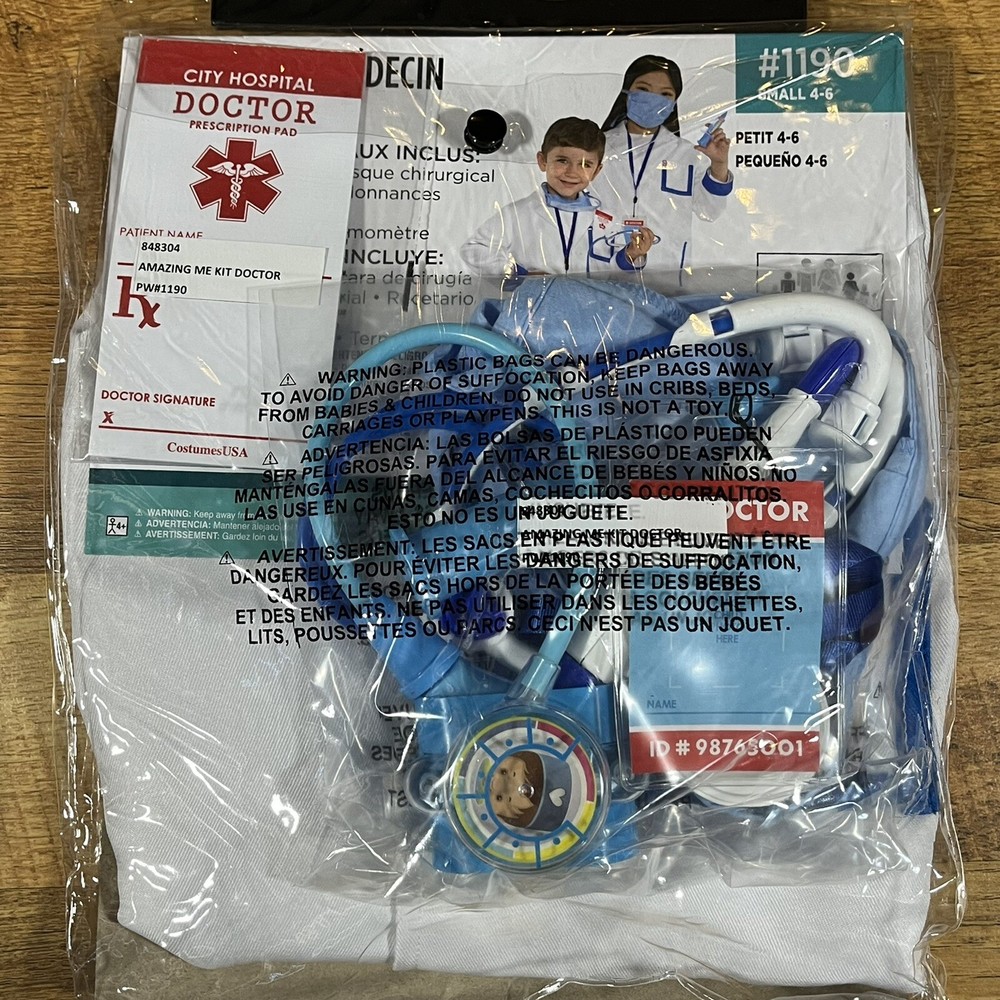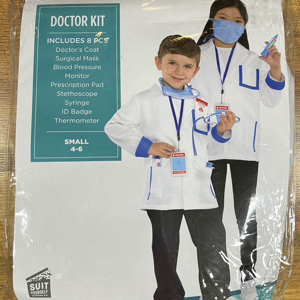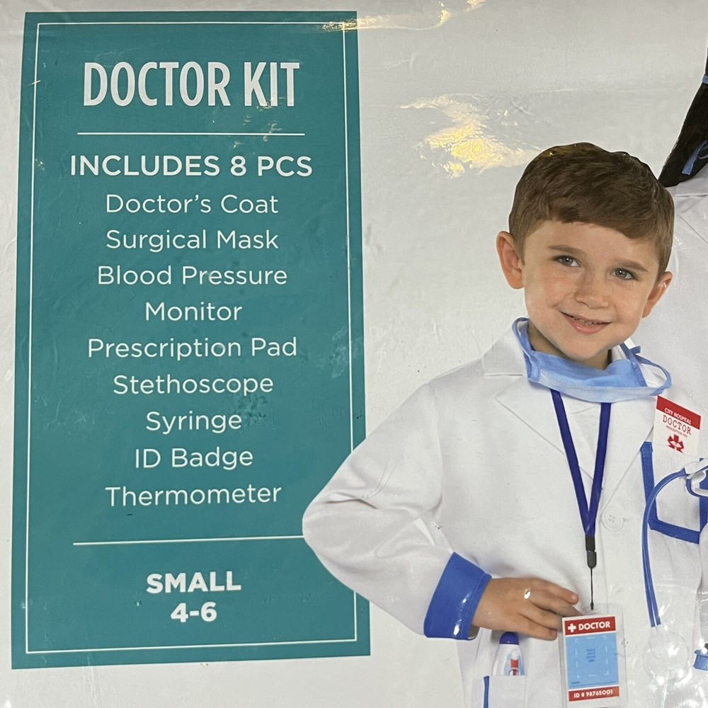 Doctor Kit Halloween Child Kid's Costume Set 8-Piece Size Small 4-6 Boys Girls.