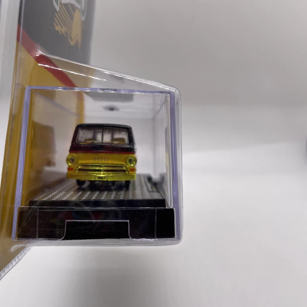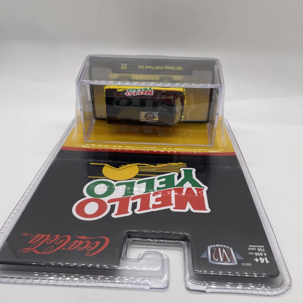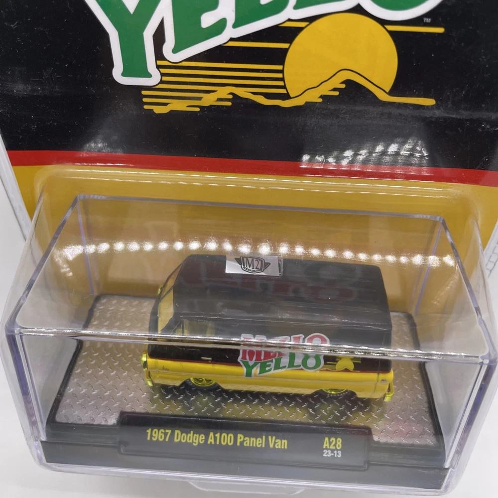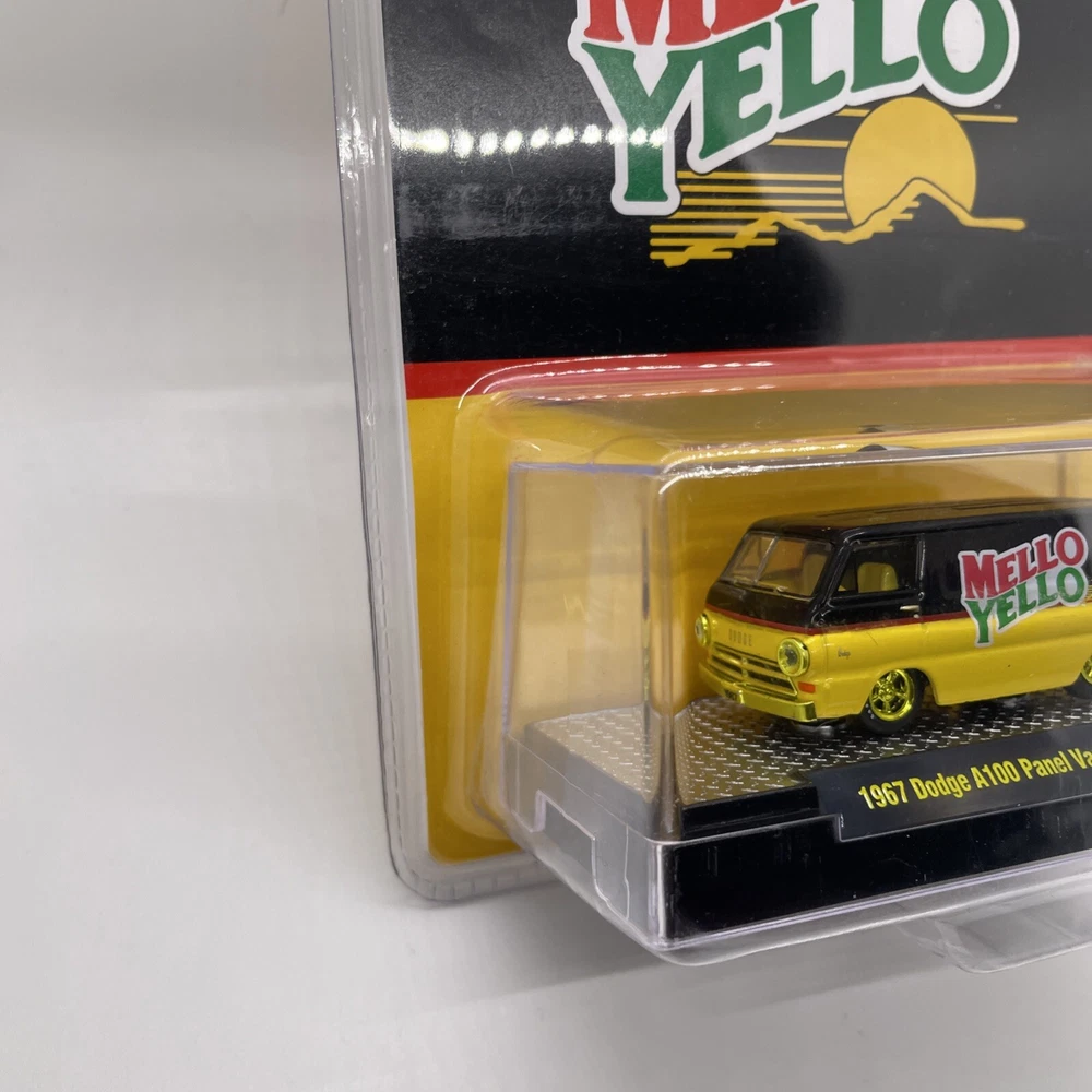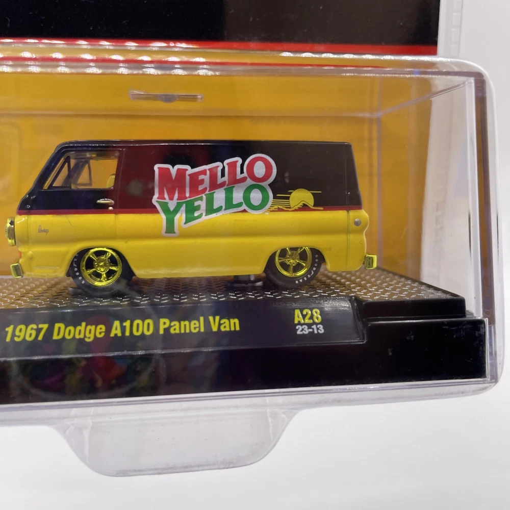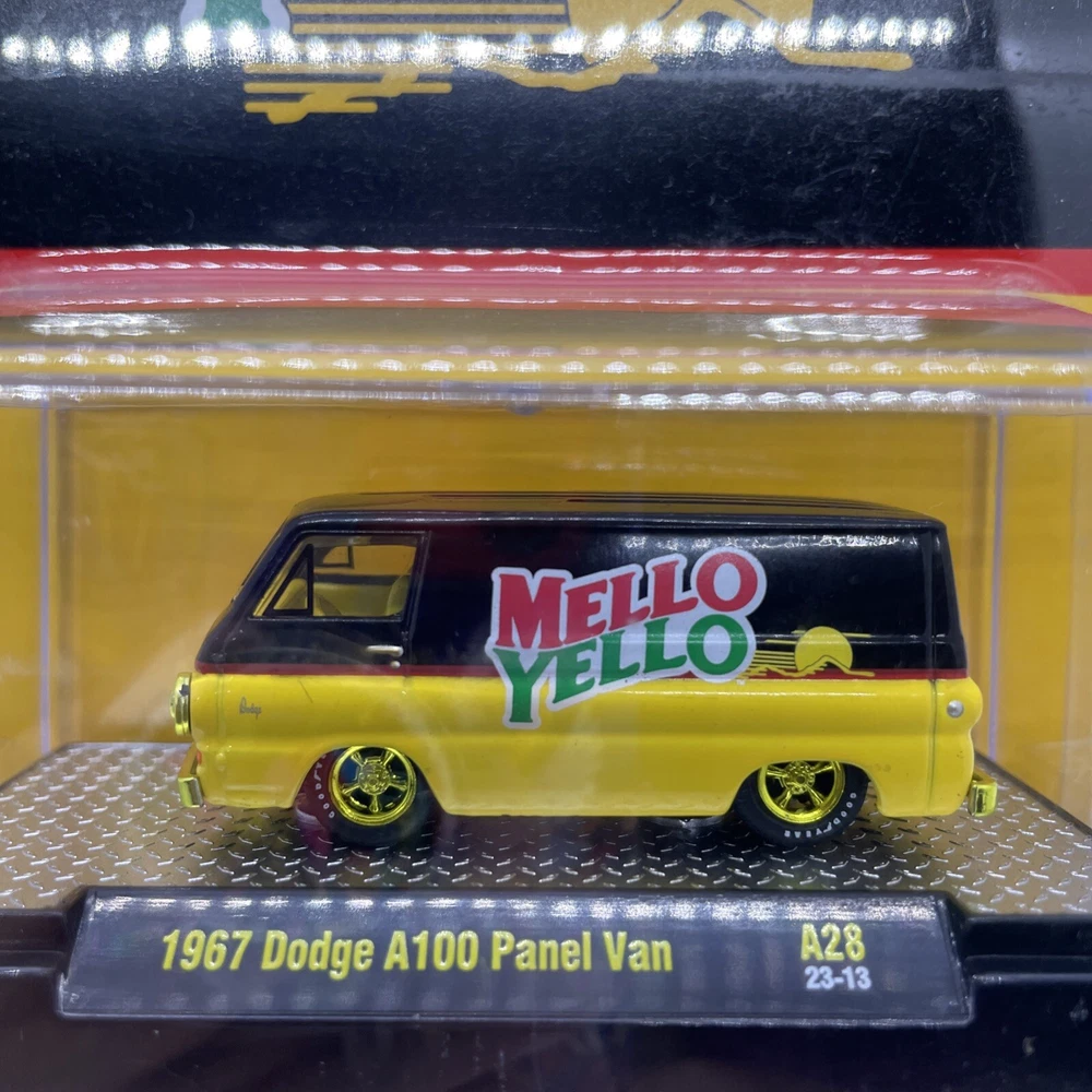 The product is an M2 Machines 1967 Dodge A100 Panel Van in a Mello Yello Chase variant. This diecast toy vehicle features a unique design and is part of the contemporary manufacture line. The Dodge A100 is a popular model among collectors, and the chase version adds to its value and appeal. It's a must-have for fans of vans and vintage vehicles, offering a special addition to any collection. Please view photos for the condition of this item will gladly combine shipping and ship in the US only thank you
