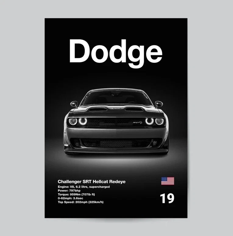 Dodge Challenger SRT Hellcat Redeye 2019 - Car Poster Print