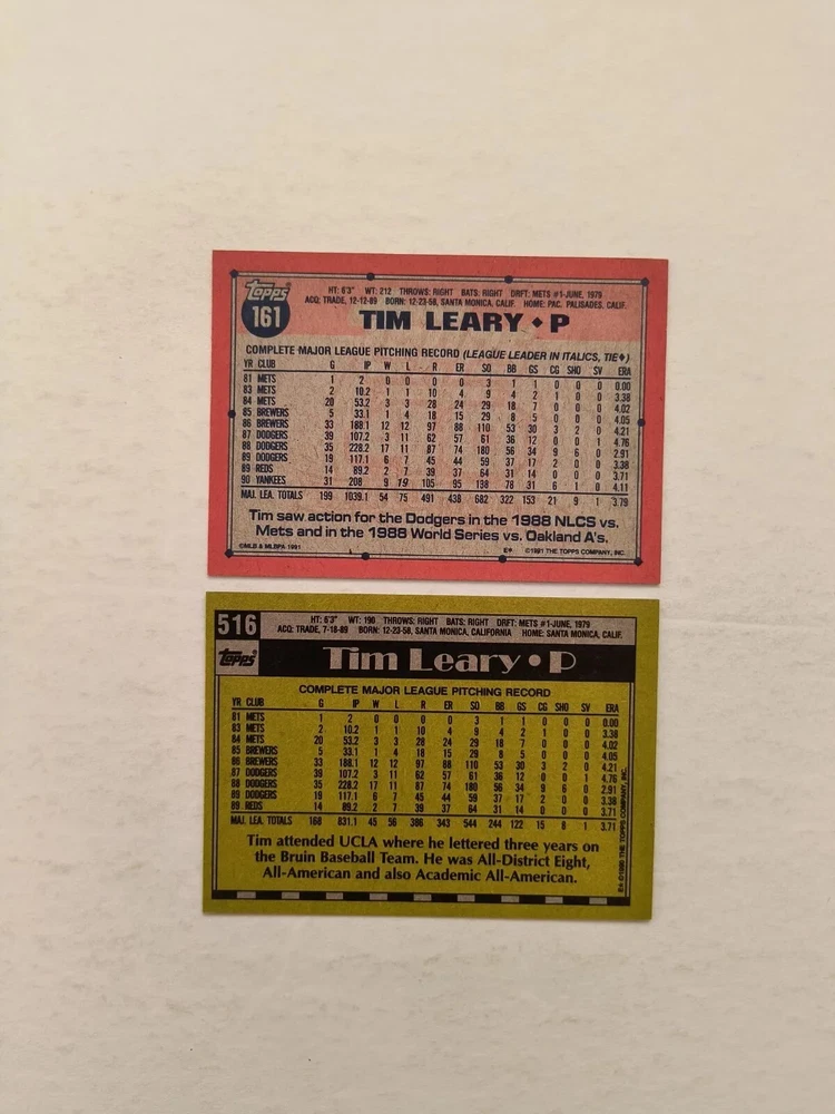12 Tim Leary baseball cards These cards will be shipped in an envelope with stamps, and sent non-machinable. The cards will have protection so that they are safe during delivery.