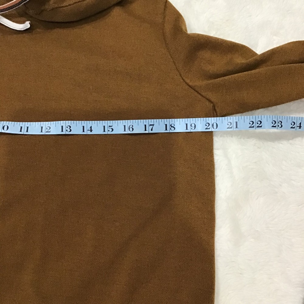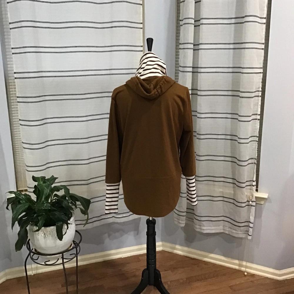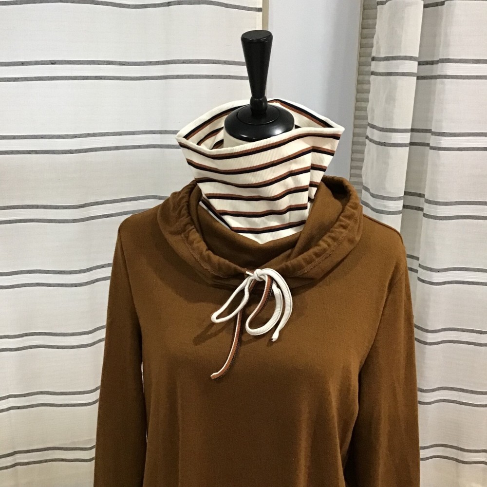 Doe & Rae Women Size SM Brown Rust Stripe Tunic Hoodie Sweatshirt Turtleneck *Ribbed*Layered*Attached Sleeves&Turtleneck*Fall Please review pictures for quality I ship same day via USPS Ground Advantage Thank you for your business!!
