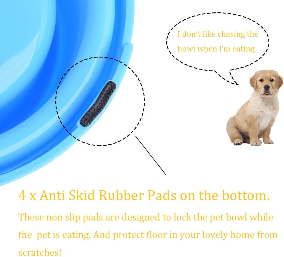 FOOD & WATER: Set of 2 pet bowls, allows you to feed food and water at the same time. This bowl can be hold 16oz, Perfect for big dogs, puppy, cats and other small animals. NON-SKID: Puppy bowl has non-slip rubber on the bottom, It will protect the floor and prevent the bowl from slipping while the pet is eating or drinking. ROBUST MATERIAL: The bowls is made with food-safe plastic, safely feeding your lovely dog. Bright and colorful appearance will give your pet a happy eating experience. This bowl is strong enough to withstand your dog bites. EASY CLEAN & PORTABLE: Cdipesp Animal Bowls are easy to clean, the smooth surface can be cleaned by hand or dishwasher. It's also lightweight, You can put it in your bag when you are traveling with your dog. MOAT DESIGN: Put water or mineral oil into the bowl moat, they will no longer be able to enter the food. Suggest put the oil or dish soap in moat, it will be evaporate slower. Product description Dog Food Bowls Pet Water Bowls Cat Feeding Bowl Puppy Food Dish Every pet owner should provide a bowl for pets to eat food or drink water. The Cdipesp bowl is your best choice. Material: Plastic Bowl capacity: 2 cups (16 ounces ) Outside Size: 7 x 7 x 2.7 inches Inside Size: 4.7 x 4.7 x 2 inches Package Included: 2 x dog bowls (blue and yellow)