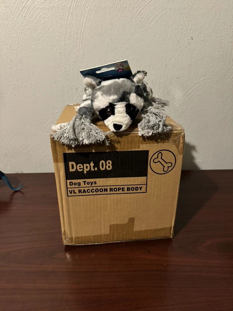 Dog Chew Toy Medium Raccoon Level 2 Rope with Inner Ball Box Of 6 Toys