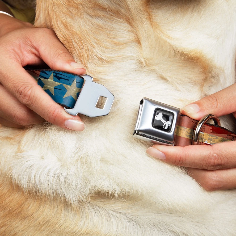 Further Details Title: Dog Collar Bone Americana Vintage Stars & Stripes Medium 11-16.5" Condition: New Release Date: 09/30/2017 Item Weight: 181g Item Height: 25mm Age Level: ‎All Life Stages Brand: Buckle-Down Designs MPN: W30137-1.0-M Item Length: 431mm Size: 1" Wide - Fits 11-16.5" Neck - Medium Number of Items: ‎22178 Type: Dog Collar Seatbelt Buckle Material: Polyester Pattern: Dog,Stars Dimensions: 17 x 1 x 1 inches; 6.4 ounces Item Width: 25mm Color: Beige Description: Your dog will be the talk of the town when people notice they're wearing this awesome SeatBelt Dog Collar! Made from high-density polyester and durable steel components, this collar is built to last. It features beautiful vibrant artwork. The buckle is a miniature authentic SeatBelt Buckle, so you press the center button to release the clasp. This product is assembled in the USA by Buckle-Down Inc. and officially licensed by Buckle-Down. Closure: Buckle Dog Breed: ‎All Breed Sizes Fits 11-16.5" neck size and is 1" wide. The buckle is a miniature authentic SeatBelt Buckle, so you press the center button to release the clasp. Made from high-density polyester and durable steel components, this collar is built to last and features beautiful vibrant artwork. This patented product (D609,408) is assembled in the USA by Buckle-Down and is officially licensed by Buckle-Down. Matching leads/leashes available. Missing Information? Please contact us if any details are missing and where possible we will add the information to our listing.