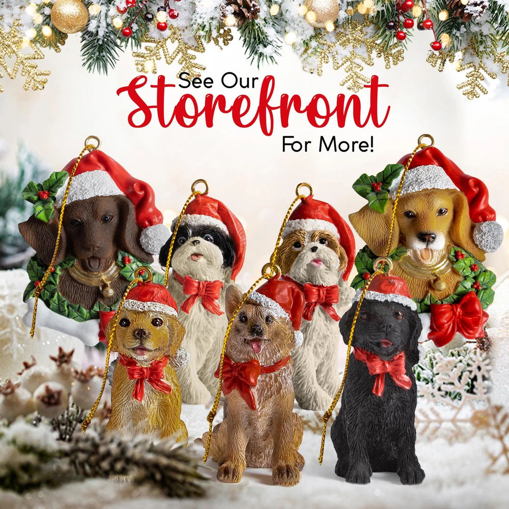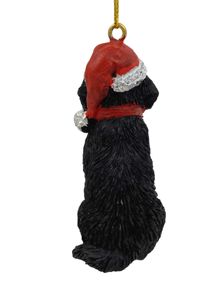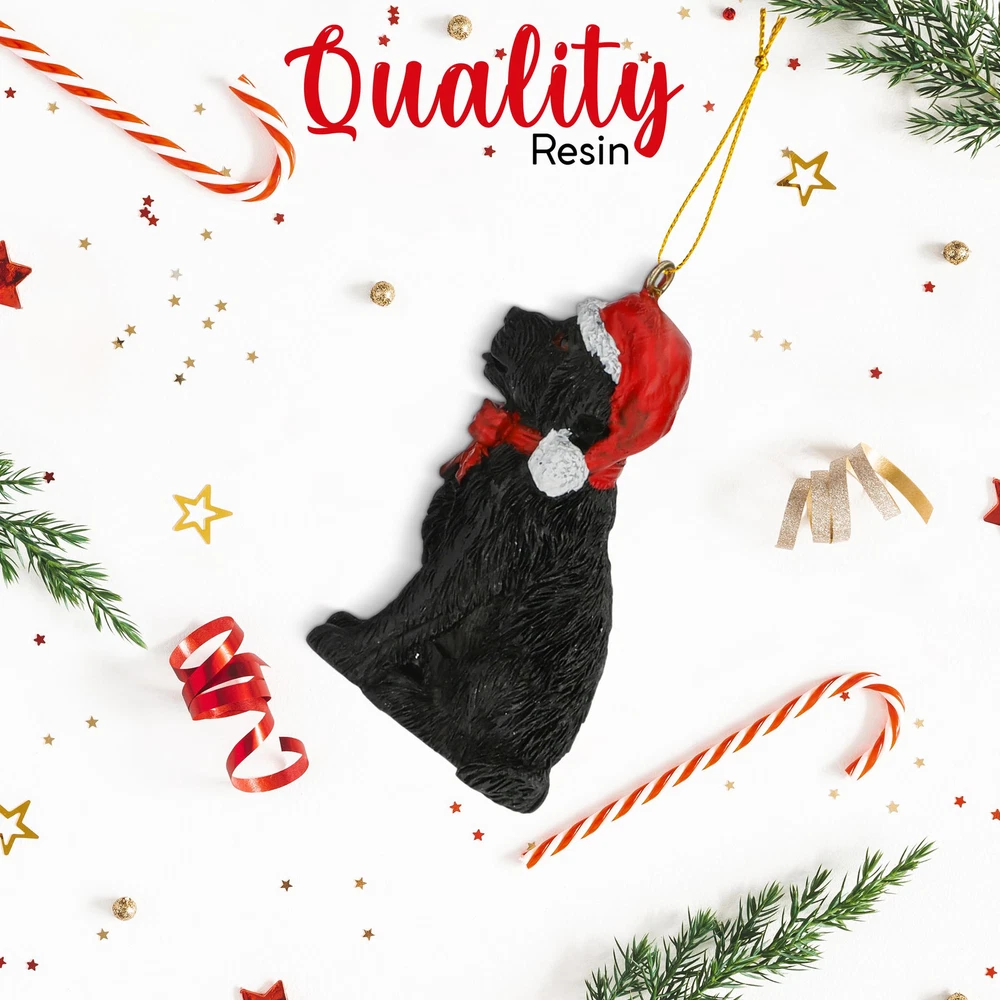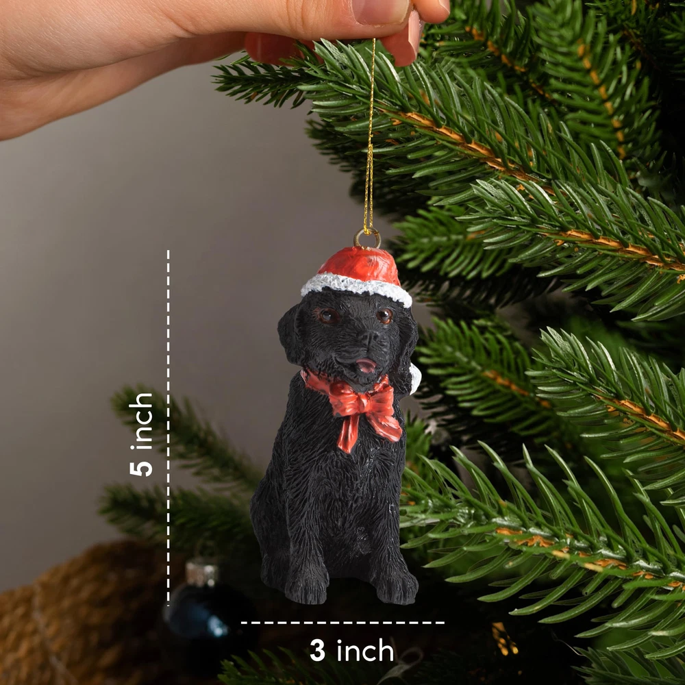 Cute black lab Christmas ornament figurine, Black Labrador retriever with Santa hat and red bow around neck Christmas ornament. Solid labrador retriever ornament made of resin including gold string for hanging on Xmas tree. Cute black lab Christmas ornament figurine, Black Labrador retriever with Santa hat and red bow around neck Christmas ornament Great gift for lab black lover, great stocking stuffer for black lab owner Approximately 3” x 2” x 1” in dimensions Made of resin, hangs on tree with gold string Black labrador retriever statue sitting down with red Santa Hat, festive ornament to add to the Xmas tree