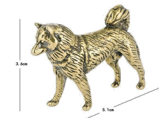 In Feng Shui, the dog figurine holds various symbolic meanings and positive attributes. Here are some commonly associated Feng Shui significances of a dog figurine: Protection and Security: Dogs are known as loyal and protective animals, and the dog figurine is believed to provide a sense of security and protection. Placing a dog figurine near the entrance of your home or business is thought to guard against negative energies and ward off potential threats. Loyalty and Fidelity: Dogs are known for their loyalty and devotion, and the dog figurine is seen as a symbol of faithfulness and loyalty in relationships. Placing a dog figurine in the southwest corner of the bedroom is believed to enhance the energy of love and strengthen the bond between partners. Good Fortune and Success: Dogs are associated with good luck and prosperity in many cultures, and the dog figurine is believed to attract positive energy and abundance. Placing a dog figurine in the southeast corner of your living space or office is thought to bring good fortune and opportunities for success. Communication and Social Skills: Dogs are known for their ability to connect with others, and the dog figurine is believed to enhance communication and social interactions. Placing a dog figurine in the living room or communal areas can create a harmonious environment and encourage positive relationships with family and friends. Emotional Well-being and Comfort: Dogs are known for their comforting presence, and the dog figurine is associated with emotional support and stability. Placing a dog figurine in spaces where you seek relaxation, such as the bedroom or meditation area, is believed to promote a sense of calmness and emotional well-being. Please note that Feng Shui beliefs can vary, and it's important to trust your own intuition and beliefs when incorporating symbolism into your living or working environment. Descriptions: Description: This brass dog mini figurine showcases the charm and grace of dogs in a compact and exquisite form. The figurine measures approximately 1.97 inches (5 cm) in length and 1.42 inches (3.6 cm) in height. Fine Craftsmanship: The brass dog figurine is meticulously crafted, capturing the unique characteristics and lifelike details of a dog. From the sleek contours to the intricate facial features, every aspect reflects the artistry and dedication put into its creation. Elegant Design: The brass dog figurine emanates an aura of elegance and sophistication. Its petite size makes it a versatile décor piece, perfect for adorning shelves, desks, or any small space that benefits from a touch of canine charm. The poised stance and regal expression of the dog add a sense of nobility to its presence. Premium Material: Crafted from high-quality brass, this miniature figurine shines with a golden gleam. The use of brass not only enhances the durability of the piece but also lends it a sense of timeless beauty. It is a delightful collectible or a thoughtful gift for dog enthusiasts or lovers of beautiful craftsmanship. Symbol of Loyalty and Companionship: Dogs are renowned for their loyalty and companionship. The brass dog figurine symbolizes these qualities, serving as a reminder of the strong bond between humans and dogs. It can be a cherished memento of a beloved pet or a symbol of the enduring friendships and relationships in one's life. Package Include: 1 x Brass Dog Characteristics: Size: 5x3.6x1.8cm; 2x1.4x0.7in Material: Brass Color: Golden