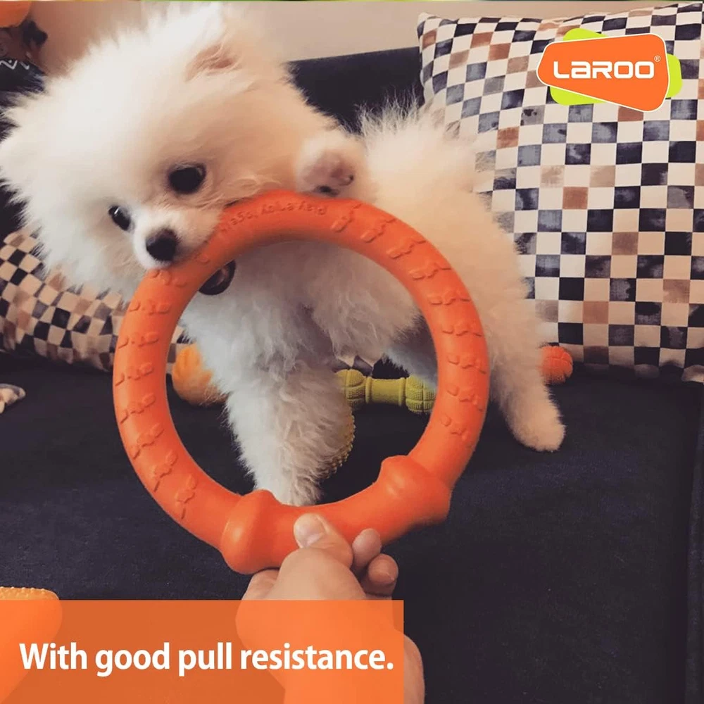 【High-standard Eco-friendly Safety Materials】 It is made of high quality and food grade HD-EVA ABS material, environmentally friendly and non-toxic. It's gentle on a dog's mouth and dog onwer's hands, but also super strong and durable enough to play the push and pull game. 【The Perfect Fitness Ring for All Dogs】 LaRoo dog flying fitness ring is a suitable interactive toy for throwing, catching, retrieving games, tug of war and chewing with dogs. It consists of aerodynamics and ring design to make it tossed and picked up easily. 【Clean Teeth & Enhances Underactivity】 The raised surface area of the LaRoo fitness ring helps the dog massage the gums, clean teeth and prevent your dogs from periodontal disease. The multifunctional fitness ring can be used as a flying disc, can be hung on the dog's neck, can be used on the water, increase the dog's activity, improve movement, reduce anxiety and depression. 【Not for Aggressive Chewers】 Like every other toy, the toys are NOT indestructible. We recommend supervised play and timely replacement of the broken ones. 【Brand Guarantee】 We are the LaRoo brand owners specializing in developing the most suitable products for pets. We provide satisfactory service to every customer. If you have any questions about the product, please email us and we will offer a free replacement service. Product Description Brand Story LaRoo was founded in 2014, and initially innovated LED pet products for pet industry and evolved within a few years into a diverse product range, who realized pet owners wanted high quality and safe products. So now LaRoo cover LED pet products and toys made of different materials and functions. And this family owned business still remember the company’s pillar is ‘SAFETY’, which every member makes contribution to love and care pets based on this motto. Dog flying discs 18cm/7inch Features: -Small dog -Durable:Light and Durable -Chewable and Washable -Safe: HD-EVA ABS material -Multifunction: Throw, catch,fetching games,tug of war and chew toy What's in the Package? 1 * LaRoo dog toy floating 18cm/7inch(Green) Small Dog Floating and Easy to Clean Light and Durable Safe Material Multifunction Medium and Large dog LaRoo designs suitable size toys for dog's mouth. This fitness Ring is more suitable for Small & Medium dogs. Waterproof & Float This ring toy made of waterproof EVA material is very light and can float on the water, suitable for playing in lakes, swimming pools and beaches. Outdoor Playing Suitable for all kinds of outdoor games, also suitable for throwing games as a flying disc. Pull Resistant With good anti-pull ability, it can play interactively with the dog and reduce its anxiety.