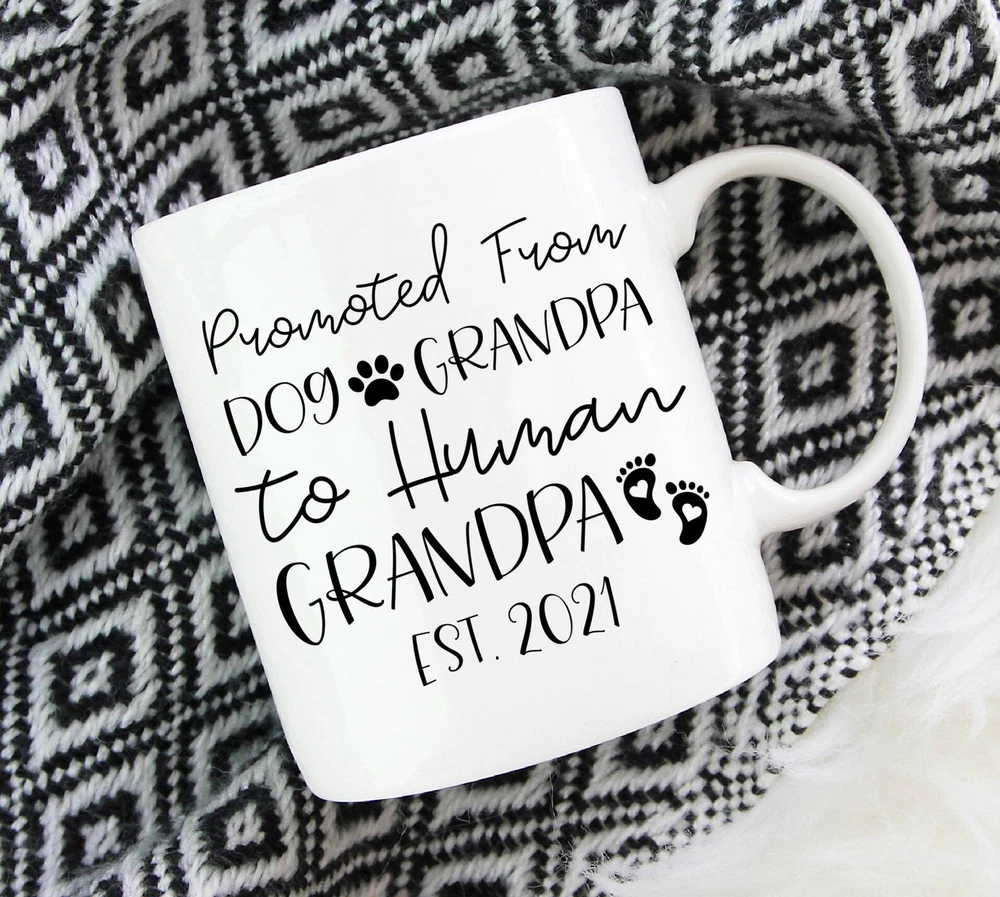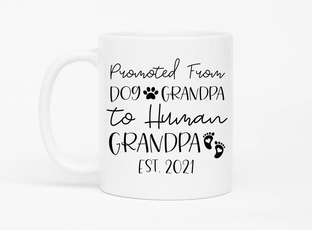 Dog Grandpa To Human Grandpa Gift Promoted To Grandpa 2021 Pregnancy Product Details.. This high quality 11oz. ceramic white mug has a premium hard coat that provides crisp and vibrant color reproduction sure to last for years. Perfect for all hot & cold beverages. The highest quality printing possible is used. It will never fade no matter how many times you wash it. Material: 100% Ceramic. Print both sides. Dishwasher and Microwave Safe. High Gloss + Premium White Finish. Printed in the U.S.A. Personalized & Custom. We support personalized and custom mug to add custom, when placing an order, you can add notes to the "order note" in shipping address section. Also you can contact us directly via message. Shipping Info. Ready to ship in 1 to 2 business days, All products are made-to-order and proudly printed in the United States. Shipped by USPS and DHL, You will receive your order in 5-7 days. Replace & Refund. All products are defective during shipping broken, chipped will be replaced free of charge. You are not satisfied with the product, we will refund 100% money to you. If any other issues arise, please do not hesitate to message, we would be more than happy to assist you.