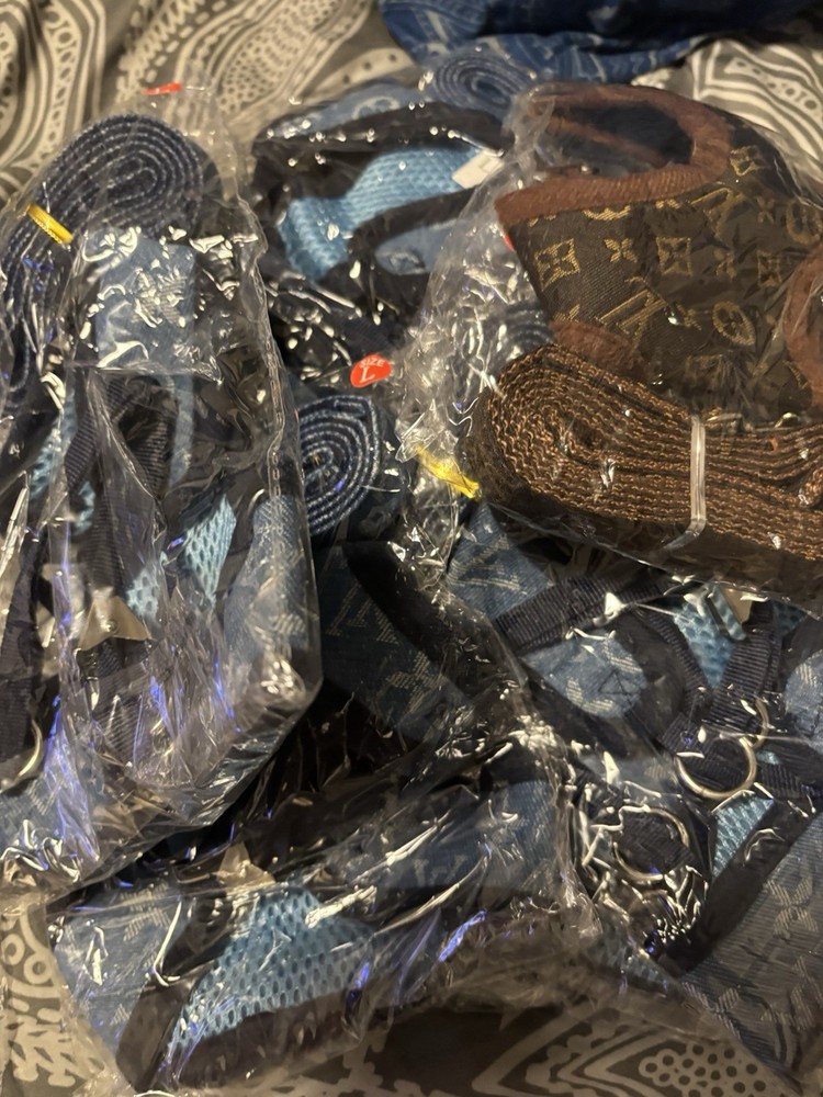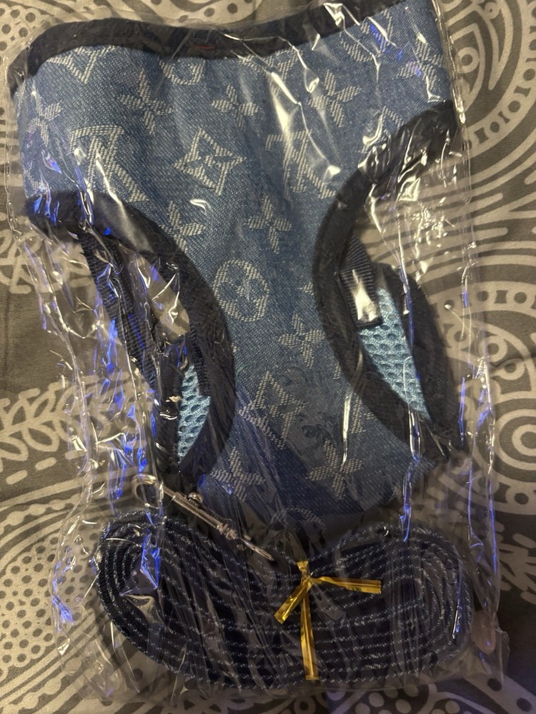 Dog harness and leash set lv printed on item