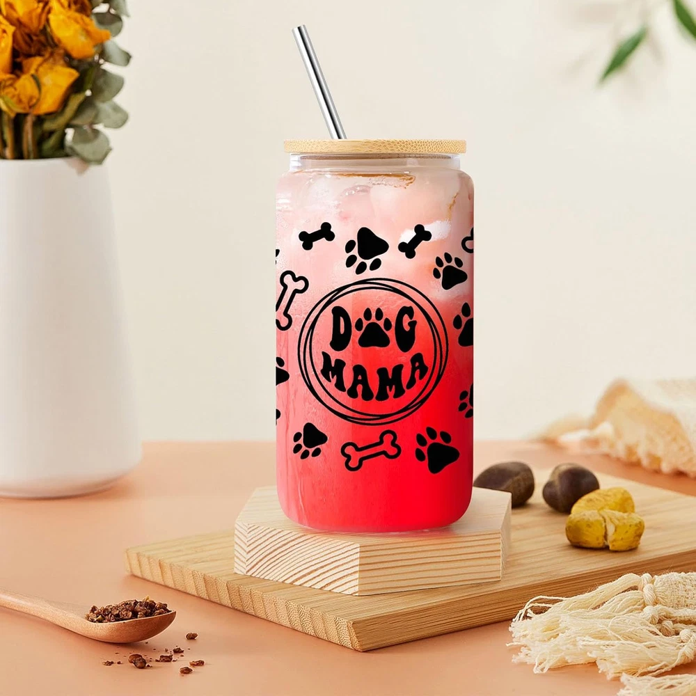 Product Description Proud to be a pet mama - Show off how much you love your pets with a coffee glass that's sure to draw a laugh. This witty coffee tumbler could also make an excellent gift for a fellow dog mom! Dog mom glass cups with bamboo lid and straw - A clean silhouette nods to the classic container in this clever mason jar. Our lovely "DOG MAMA" not only decorate the jar, but also your coffee time. 16 oz utility mason jar mug, high quality glass, classic and durable, perfect for iced coffee mugs. Lead & BPA free - Made with high - quality durable glass that is lead & BPA free, the glass tumbler with straw and lid is suitable for any hot and cold beverages. Thanks to the bamboo lid with the silicone ring, you can enjoy your drink without worrying about spills. This glass cup is perfect for espresso, cappuccino, lattes and everything in between! Multi purpose glass can cup - The travel glassware Great for any Occasion, any hot and cold drinks. It is widely loved by families, kitchen, breweries, cafes, bars and restaurants. You can use it to make perfect tea, boba bubble Pearl Milk Tea, soda, water, iced coffee, smoothie, fruit juice or any other interesting holiday drinks. Environmental protection and service - Our cute reusable dog mama cups with lids and straws are eco-friendly and do your part to protect the environment. Each set of coffee glasses has passed the quality inspection, if you receive a jar glass with lid and straw, broken or unsatisfactory, please feel free to contact us, we will provide you with the perfect solution! In order to keep the pattern of the cup body longer, it is recommended to hand wash at room temperature or in cold water. GIFTS FOR DOG MOM Looking for the ideal gift for a dog lover? Whether it's for a birthday, Mother's Day, or just to say "thank you," this glass cup is a perfect choice. The "DOG MAMA" print adds a personal touch, making it a unique and thoughtful present for any occasion. DOG MOM GIFTS FOR WOMEN Celebrate the special bond between a dog mom and her furry friend with our beautifully crafted glass cup featuring a bamboo lid and the charming "DOG MAMA" print. This elegant and practical cup is designed to bring joy to any dog-loving woman's daily routine. This glass cup is an excellent choice for birthdays, Mother's Day, or any special occasion. Show your appreciation and love with a gift that combines beauty, functionality, and a heartfelt message. From enjoying your morning coffee to winding down with evening tea, this glass cup is versatile and perfect for any occasion. GIFTS FOR: Dog Mama Gifts Dog Mom Gifts for Women Dog Mom Dog Mom Mothers Day Gifts ELEVATE YOUR BEVERAGE EXPERIENCE Whether you love hot drinks like coffee and tea or cold drinks like iced coffee and smoothies, the Glass Cup with lid is ready to be your new favorite sipping companion Dog Lovers Gifts for Women A perfect present for any occasion, this glass cup is an ideal gift for the dog-loving women in your life,Whether she’s sipping her morning coffee or enjoying a refreshing iced tea, this beautiful cup will make every moment more special. Gift her a token of appreciation that’s as enduring and heartwarming as her bond with her dog. Suitable for Cold Drinks This stylish "DOG MAMA" glass cup is perfect for your refreshing cold drinks. Its high-quality glass ensures durability and elegance, keeping your beverages cool and enjoyable. Ideal for iced coffee, smoothies, or any chilled beverage, it's a must-have for dog moms who love to sip in style. Suitable for Hot Drinks Enjoy your favorite hot beverages with this charming "DOG MAMA" glass cup. Made from premium glass, it can withstand high temperatures, making it perfect for hot coffee, tea, or cocoa. Its sturdy design ensures a comfortable grip, allowing dog moms to savor their drinks in warmth and style. CARE INSTRUCTIONS: PACKAGE INCLUDES: 1 x 16oz Can Glass, 1 x Matching Bamboo Lid, 1 x Reusable Stainless steel Straws and 1 x Straw Brush. The straw brush helps you clean the inside of the drinking straw well. The lid is closed shut with a silicone seal, to avoid spilling on the go.