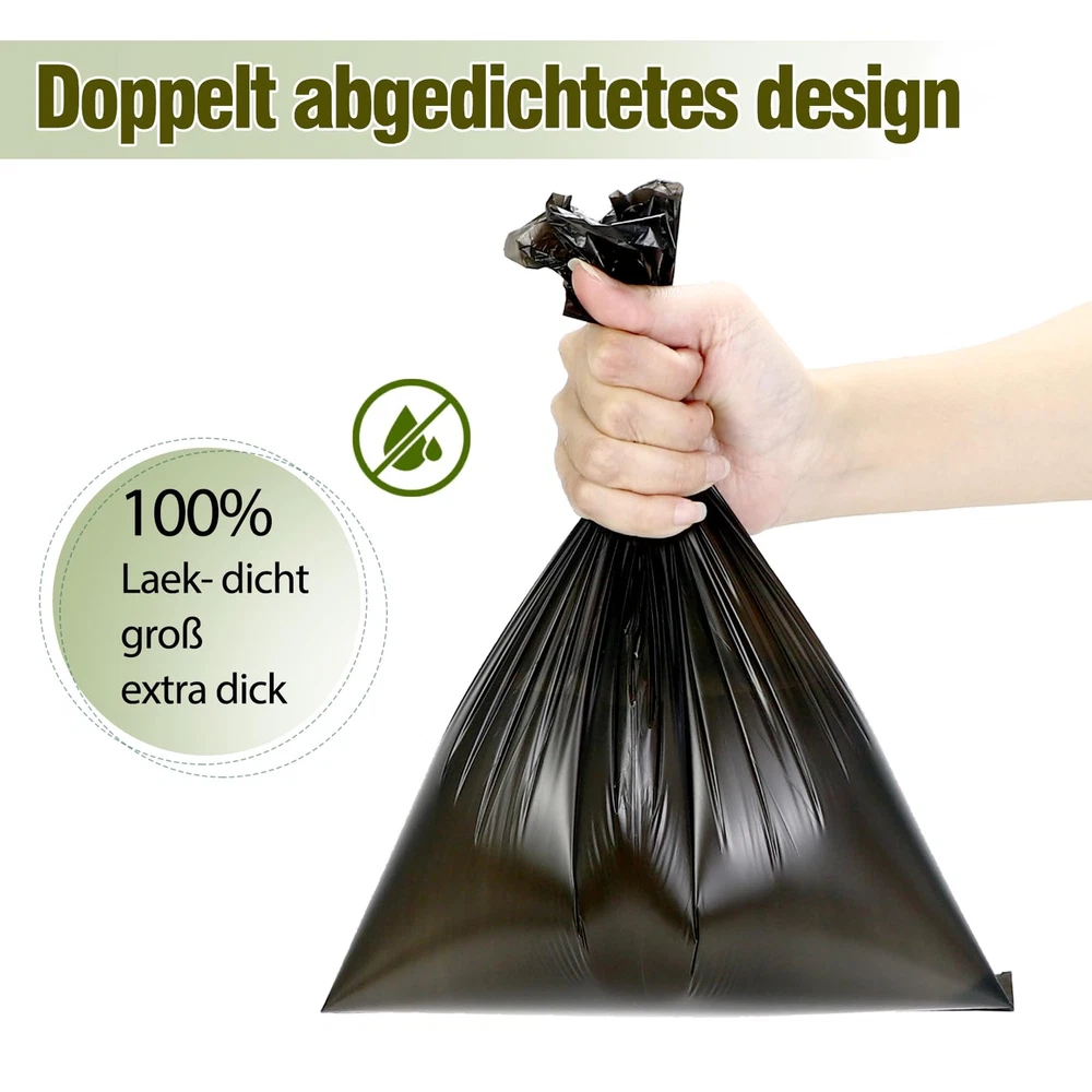 PRODUCT INFORMATION: 👉Color: Green 👉Quantity: 150 total, 10 rolls inbox, 15 rolls each 👉Bag's Size: 34.4cm x 22.7cm(13.5in x 9in) PRODUCT FEATURES: 🌎Eco Friendly We use recycled materials in our packaging and roll cores because details matter. 💪Easy Tear Off Each dog poop bag refills are easy to open and the special perforation cut on the bottom makes it effortlessly separate from the roll, so you can enjoy a -free walk with your best puppy. 🚮Leakproof, Easy to Tie Bags Each large poop bags measures 13.5 x 9 inches (L x W), provides enough space for the large dogs' poop, and easy to tie a knot. 🐕Not Just for Dogs🐈 These biodegradable poop bags open larger than our standard sized formats to accommodate larger sized poops (and even most cat litter scoops!) and have enough space for tying a knot when you're on the go. ⚠SAFETY WARNING Keep all bags away from babies, children and animals. This is not toy. 【High Quality Poop Bags】- Dog poop bags are made of premium plastic and strict quality control process, the human friendly and non normal plastic material can be broken down in nature, reducing pollution to the environment 【 Leak-Proof Doggie Poop Bags】- Thick enough and strong, strong bearing capacity, firm and not damaged, the bag will not leak, the shoveler is more assured to pick up the poop, No more worry for have feces on bare hands because of rips 【Dog Poop Bags with Dispenser】- Each dog waste bags are measure 12.2 x 8.8 inches, and is large enough for most sizes of dogs and cats, enough to tie and pick up more pet poops. Poop Bags Set also can be used for cat litter clean up, baby dirty diapers, food scraps, or car litter disposing 【Easy Tear-off】- The doggie poop bags is with good toughness and breakpoint design and the bottom easy-tear hole seam for quick detach bag from the roll. When you're on the go with your dog, you can enjoy -free outdoor walks with your dog 【What You Get】- You will get 57 rolls with 20 poo bags each, 1140 dog poo bags that supply up to 1 year (3 doggy poop bags per day usage)-- includes 1 reusable standard dog poop bag dispenser