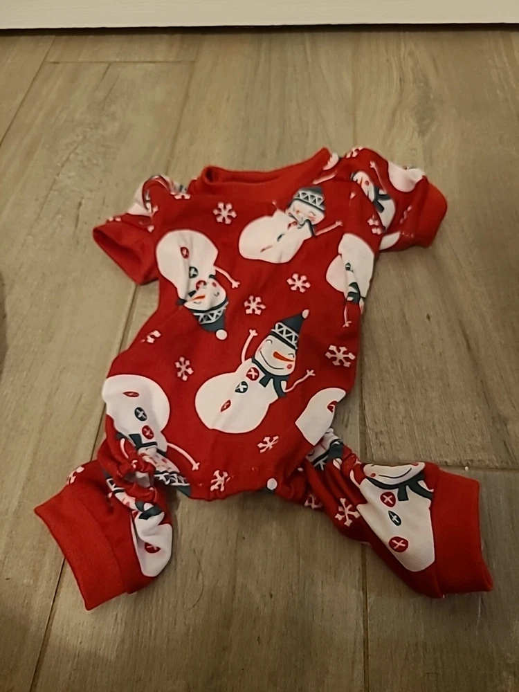 Dog Puppy Christmas Pet Pajamas XS Red Snowmen Cotton Stretch Holiday Xmas