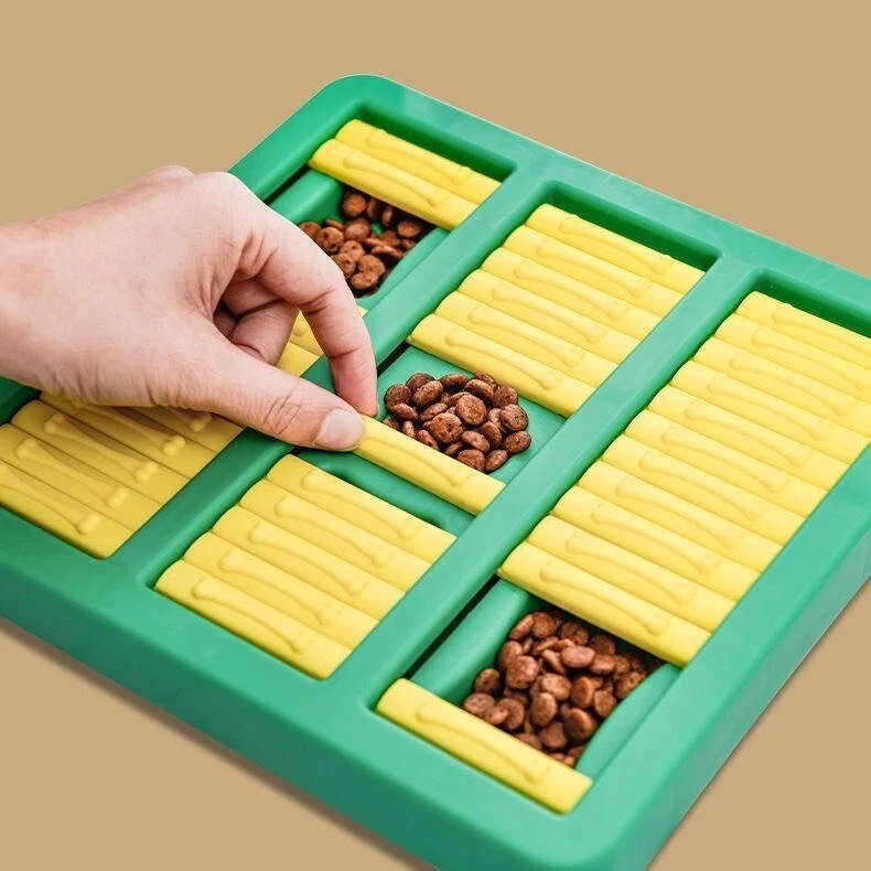 Dog Interactive Toy, Dog Puzzle Toy, Treats toy, Feeding Toy, Fun Toy for Dog, IQ Toy for Dog Smell a puzzle toy Size: 9.5" x 9" x 1.1" A fun dog puzzle and a slow-feeder dog tray. Give your dog early training and play smart. Instructions for use: Dog move sliders with his/her paws and nose to reveal treats. *This puzzle toy can help your dog exercise his/ her sense of smell. * It can help reduce destructive behavior by exercising his/her mind. * It can be used as a slow food tray to make eating time longer and more interesting. * Great Toys for reducing Dogs' boredom. Warning!!! Always Supervise your dog closely. DO NOT leave your dog alone with this puzzle. DO NOT let your dog chew on the puzzle. Inspect for damage and remove if broken. This product is for dogs only. This product is not a children's toy. FEEL FREE TO CHECK OUR PET CARE BUNDLE IN OUR STORE