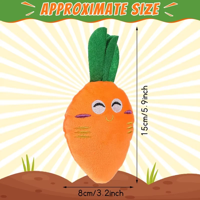 Quality Material: Benepaw stuffed carrot dog toys are made of reliable plush, filled with PP cotton, comfortable and without peculiar smell, soft and lightweight, suitable for pets to chew and play Inside Vocalizer: the carrot plush toys are built-in vocal airbags, so they will make a squeaky sound when bit by dogs, which can easily catch the pet's attention, and allow the dog to play happily Keeping Teeth Healthy: our vegetable dog toy can clean your pets' teeth, massage their gums and relieve stress; Keep your puppy happy and reduce destructive behavior at home Friendly Tip: our sound dog toys measure about 15 x 8cm, suitable for puppies, small and medium dogs; But not for aggressive chewers; We recommend that your dog play with the toy under supervision, and please replace toys promptly