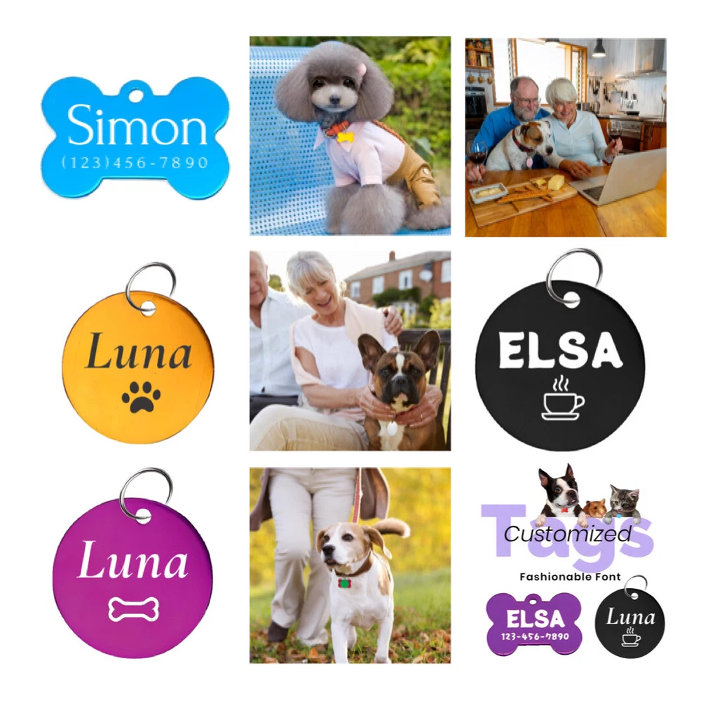 Dog Tags Customized Stainless Steel Pet ID Tags, Anti-Loss ID Tags Charm Package Includes: 1 x Pet ID Tag and 2 Stainless Steel Divider Ring. Custom Engraved Pet tags! Note: Pictures are taken in kind, due to the different colors of the display, there may be deviations. Due to manual measurement, there will be an error of +/- 0.2". Thank you for your understanding. We will use regular mail to ship this with no tracking numbers, unless you purchase 4 or more. How to customize? Choose your favorite Font Please NOTE the more fonts per line the smaller the font gets! Up to 3 lines on each side. Maximum 16 letters per line. Please leave your informations as follows: Both Sides Engrave Front: Name / Name+Symbol Back: Line1 Im lost! Line2 Please call my people Line3 123-456-7890 1 Side Engrave Front: Line1 Your pet name (Luna) Line2 123-456-7890 Shipping: We ship your items using USPS envelope service with no shipping number. You will receive them in your mailbox. If any other questions please contact with us . Happy shopping with us!!