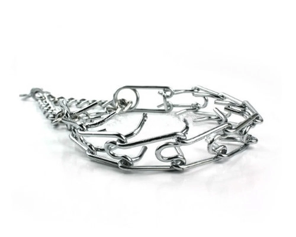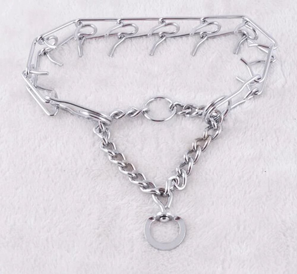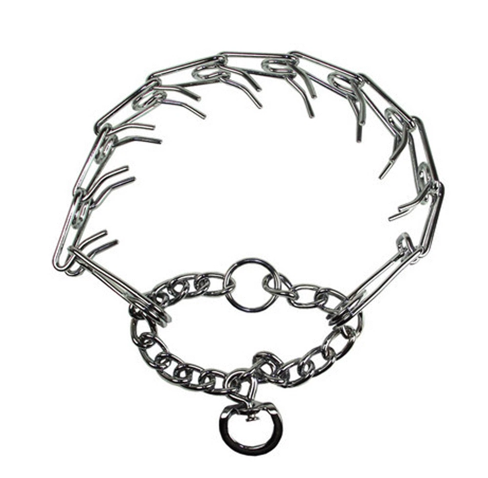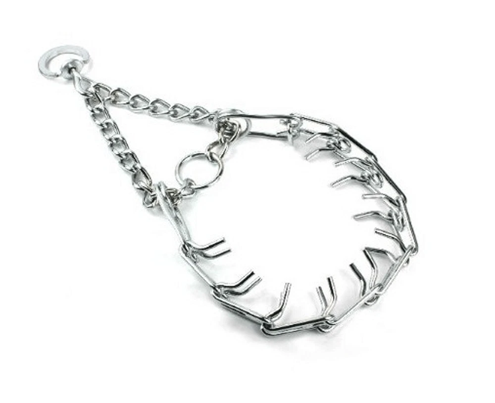 1 Dog Training Choke Chain Collar Metal Steel Prong Pinch 4.0mm Thick x 16"-22" Adjustable As you can Remove or Add Links Need a good training collar but you haven't decided yet which one to choose? We would like to bring to your attention this wonderful Dog Prong Collar with Swivel. Though some people consider prong collars to be harmful for their dogs or ineffective in training, professional dog trainers advise them like humane collars. The thing is that the prongs, which are arranged on the inner surface of the collar, provide an effect of the mother-dog's teeth. They attract dog's attention already when you make a very light jerk. That is why prong collars don't hurt dogs, they just remind them of their instincts. These collars are usually recommended to all people, who don't have enough strength to control their dog's. Moreover, as the prongs pinch straight to the dog's skin, it is very effective for training thick haired dogs as well. Item Description: Wire diameter : 4.0mm Gas Welded licks Butt welded rings Double chrome plated It's very strong made by solid steel. High rust resistance and high gloss. Could be added or reduced some to fit your dog's size. Collars are fully adjustable. Links can be added or removed as needed. Maximum collar interior perimeter of 4.0mm Dog Training Collar is about 21" (54cm). To determine the proper size, please measure the circumference of pet’s neck and add 2". Package Included: 1 x Adjustable Dog Training Collar Maximum Collar interior (inside Collar) perimeter is approx. 20" inches (Interior perimeter is approximately 20"inches: exterior perimeter is approximately 22"inches, This measurement is after you get the collar on pets neck.) How to Determine Proper Size : Measure the circumference of pet’s neck and add 2" inches If you live in Alaska, Hi, PR, VI your item will take much longer for you to get it