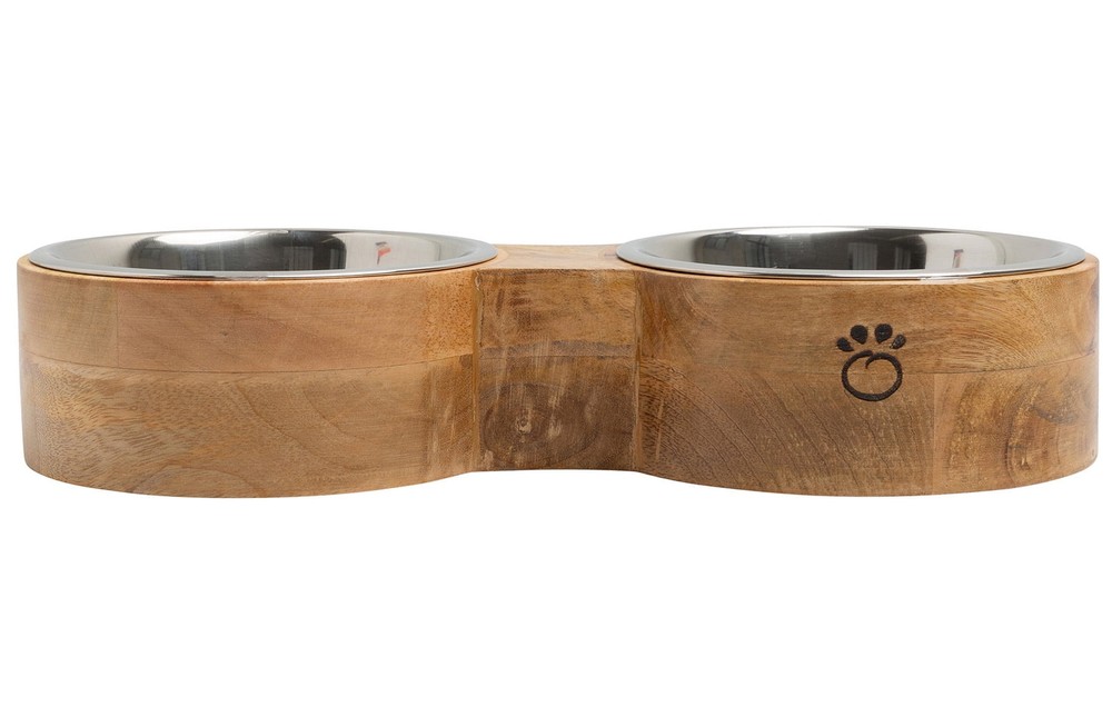 The handcrafted mango wood pet feeder with a unique design Each Mango Wood Figure-8 Pet Feeder is hand crafted from natural, sustainable or reclaimed mango wood pieces, making it exotically unique in design. Master artisans blend together diverse patterns and color variations inherent in mango wood, then finish each piece by hand to ensure that no two pieces are alike. The stainless-steel insert bowls are removable and dishwasher safe. Product details: Made of exotic and durable mango wood to match any décor Unique Figure-8 Design Handmade in India Includes two dishwasher safe stainless steel inner bowls For dogs or cats Durable stainless-steel food bowl for puppies, dogs, cats, or kittens or any pet animal. Easy and simple cleaning. Offers a healthy alternative to plastic doesn't hold odors. Perfect for dry kibble, wet food, treats, or water.