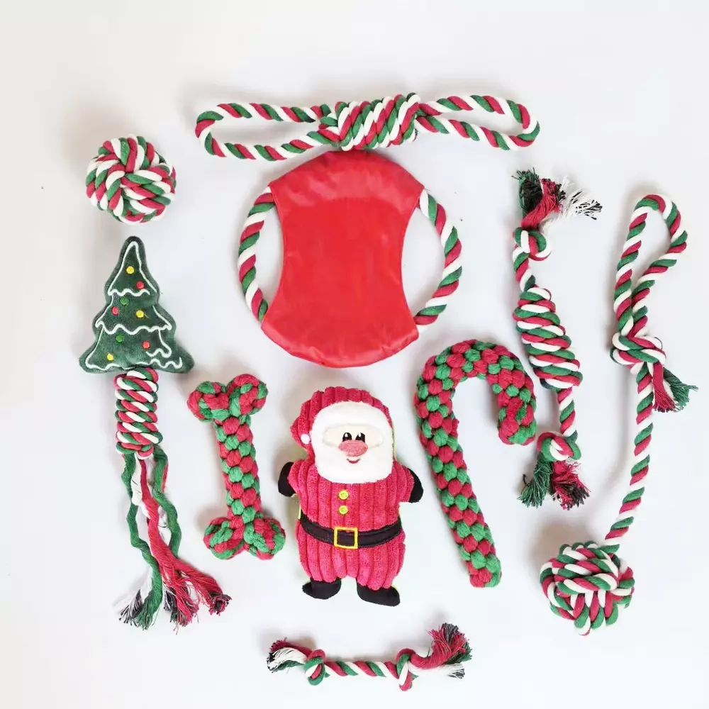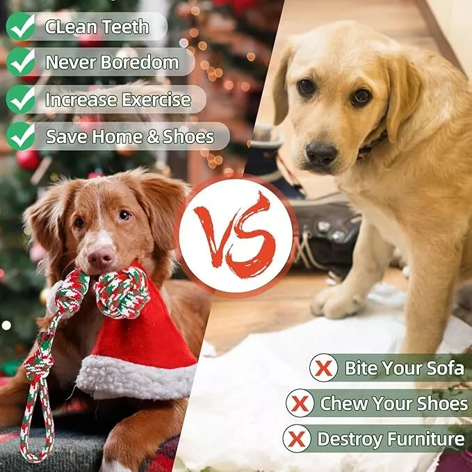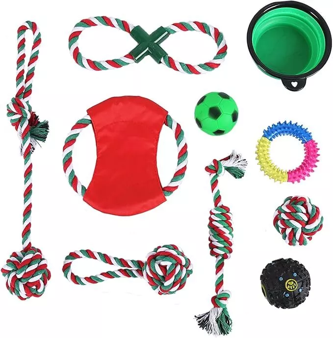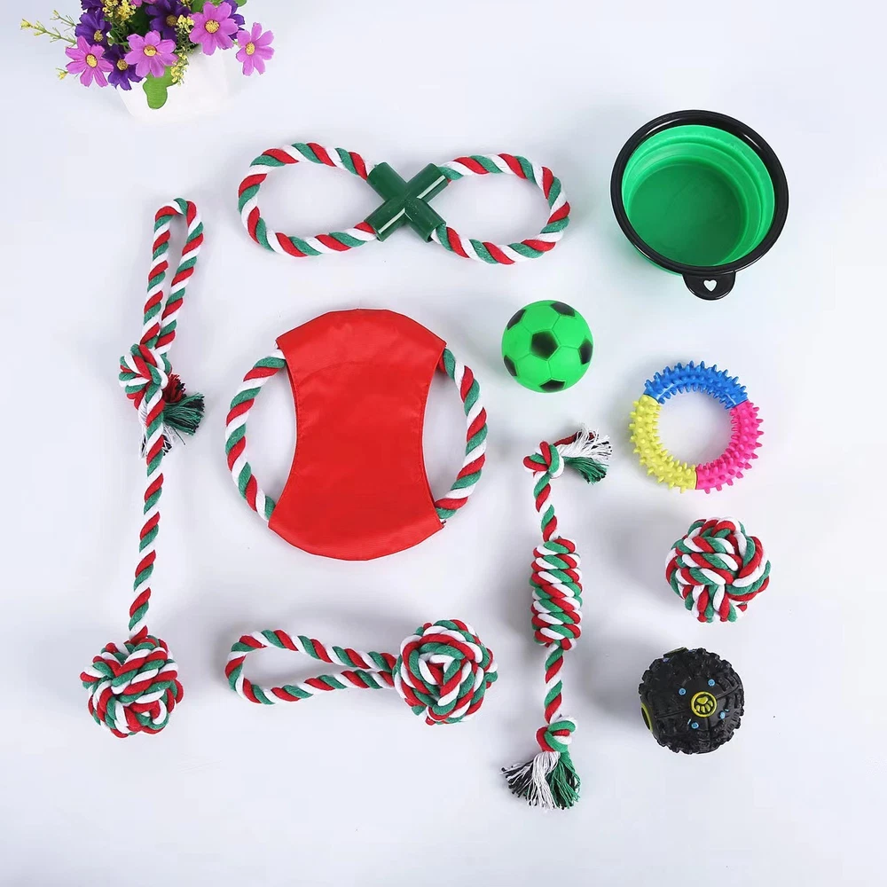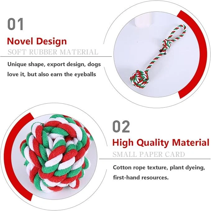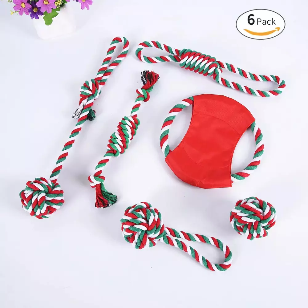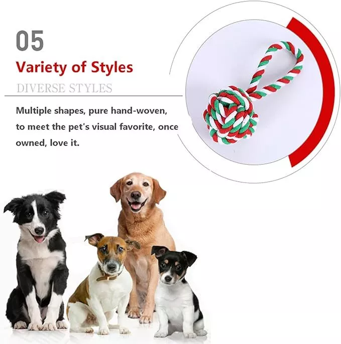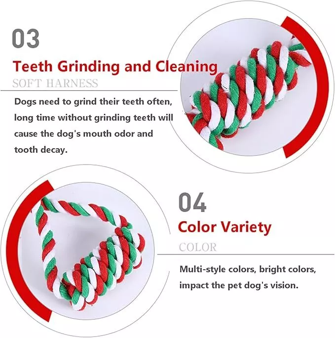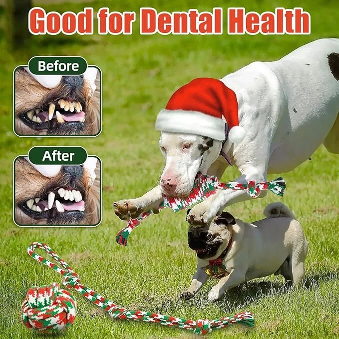 Dog rope Toys Puppy play Toys Braided Chew toys Teething Toys bowl Christmas USA