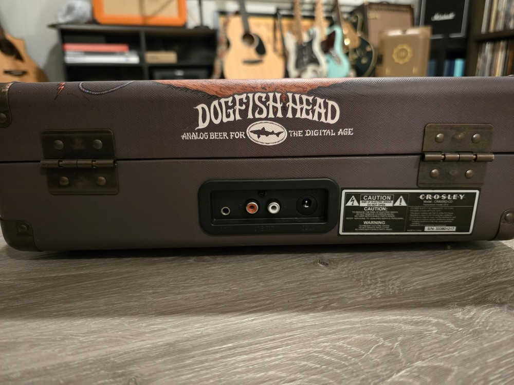 The Dogfish Head Analog Crosley Cruiser Bluetooth Record Player CR8005D Marq Spusta is a stylish and unique record player designed by Crosley in collaboration with Dogfish Head and artist Marq Spusta. With Bluetooth connectivity, this player allows for convenient wireless streaming of music from your devices. The design combines retro aesthetics with modern technology, making it a standout piece for any home audio setup. The collaboration with Dogfish Head adds a touch of exclusivity and character to this one-of-a-kind record player.