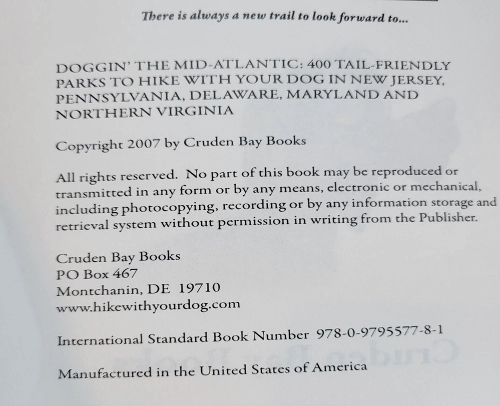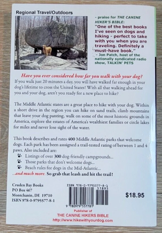 Doggin' The Mid-Atlantic The Guidebook For The Active Dog Owner This books rates 400 parks in the mid-atlantic that welcome dogs New Jersey Pennsylvannia Delaware Maryland Northern Virginia - Hiking areas - Dog Beach Rules - Camgrounds - Parks that do not welcome dogs