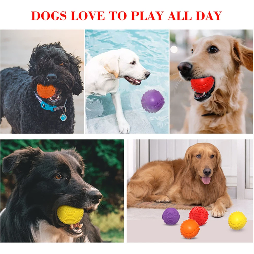 Dog Squeaky Balls Toys For Aggressive Chewers Large Breed Balls Interactive Dog Ball Toy Pet Training Features: Featuring high toughness and resistance, this dog chew toy can achieve long term use and do no harm to your gums and teeth. Characterized by built-in sensitive sounding device, this dog squeaky toy can stimulate the dogs interest, satisfy your dogs chewing instinct, reduce anxiety and destructive urges to chew. Made of high-quality rubber material, it is durable to use. The diameter of the product is 9cm. It is suitable for both indoor or outdoor to play wirh your pet. Product Description: Material: Rubber Color: Yellow,Red,Purole,Orange Size:Diameter 9cm/3.54" (Approx.) Package Includes: 1 x Dog Squeaky Toy Notes: Due to the light and screen setting difference, the items color may be slightly different from the pictures. Please allow slight dimension difference due to different manual measurement.
