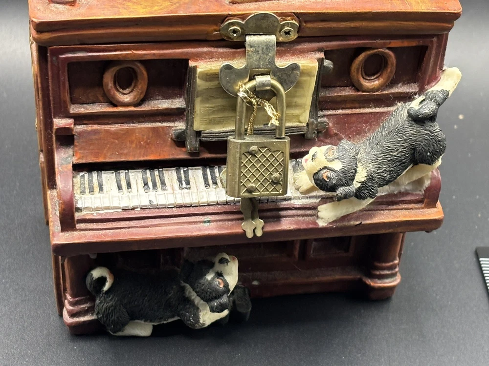 This Is A Dogs Puppies On A Piano Money Coin Bank Trinket Box With Lock And Key. You Can Add Money In The Slot At The Back Of The Piano Check The Pictures For Condition Before Purchase. Thank You For Shopping With DepotStreet. Please Check Out The Other items In Our Store.