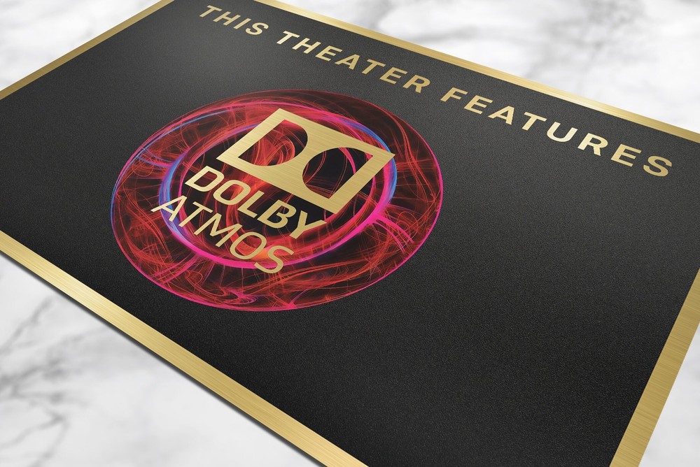 Dolby Atmos Red Home Theater Sign Custom made home theater signs. Perfect for your home theater/ man-cave setup Our signs are made out of brushed gold aluminum We include double-sided 3M tape for easy hanging just about anywhere Size - 12inch x 8inch our signs are custom made in the USA We have very fast shipping and offer money back guarantee Do not see a sign you need, let us know and we can custom make it for you