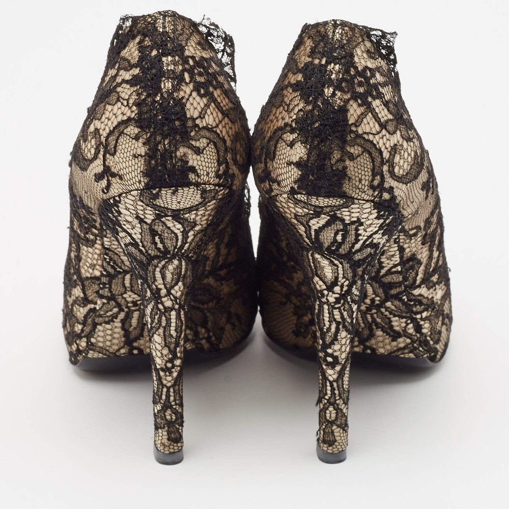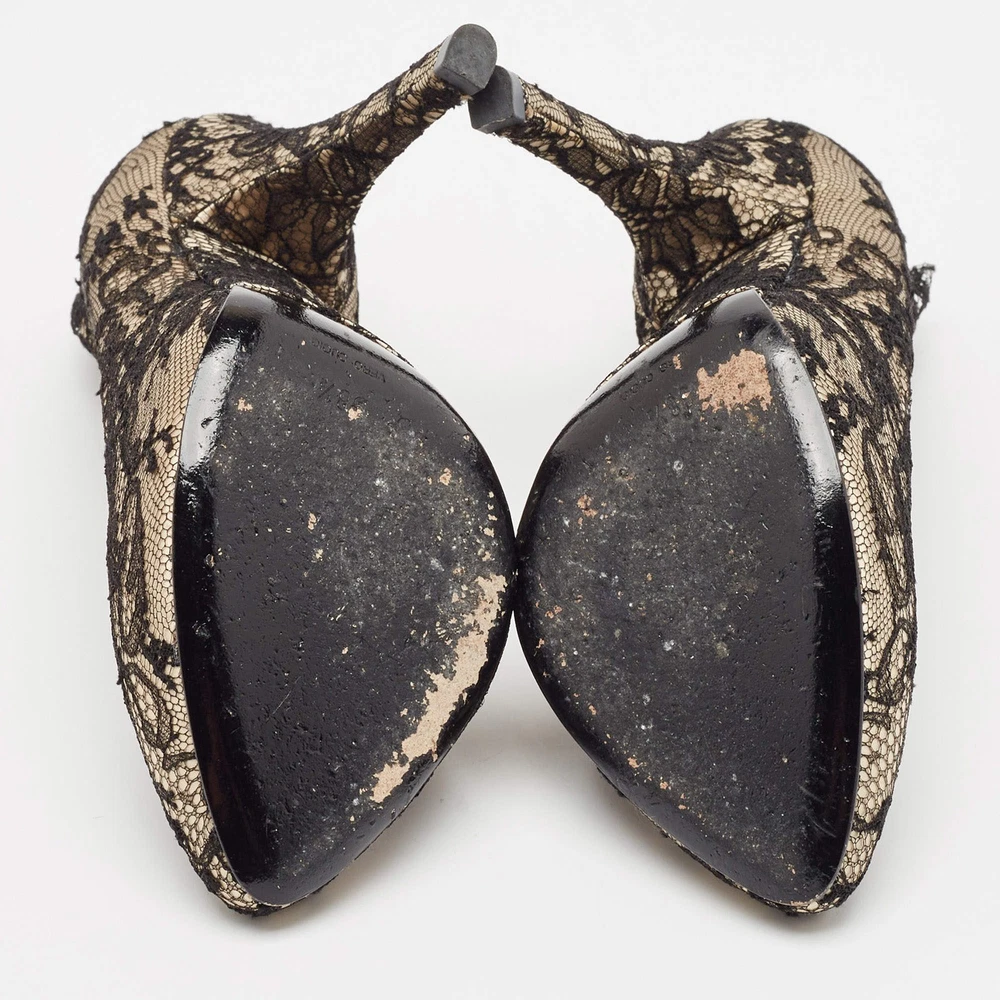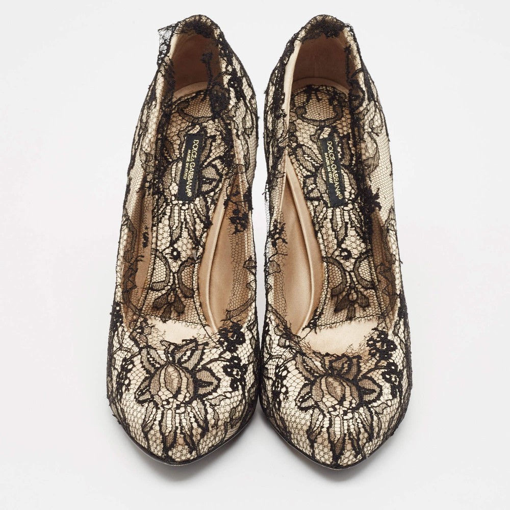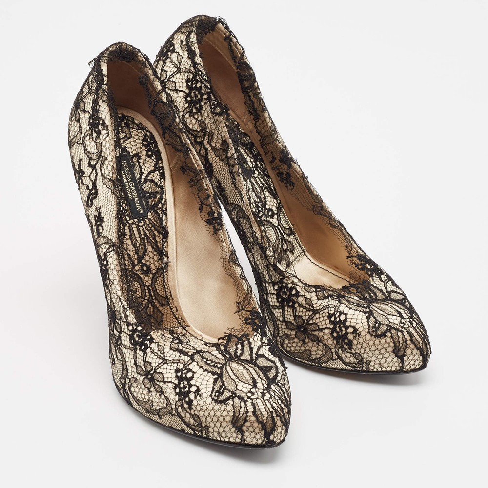 Our eBay Store About Us Contact Us Add to Favorite Sellers Dolce Gabbana Cream Satin And Black Lace Platform Pumps Size 385 Exquisite and feminine, these authentic Dolce & Gabbana pumps combine cream satin with intricate black lace and a dramatic platform design. Product Details Brand Dolce & Gabbana Color Cream Includes Original Dustbag, Original Box Outsole Length 23 cm Outsole Width 8 cm Size 38.5 Certified by The Luxury Closet This item has gone through a detailed authentication process overseen by our experts. We offer a lifetime guarantee of authenticity on all our items. How We Check The in-house team of experts at The Luxury Closet is highly trained to verify the authenticity and the condition of the luxury products. They ensure that only 100% authentic items are put on sale.The evaluation process is unique with its own mix of assessment criteria and differs according to the category. Each item is evaluated based on the following combination of hallmarks, hardware, stitching, symmetry, material, craftsmanship, stamping, codes, hologram stickers, and packaging. Our authenticators also check if the items have been modified or amended (e.g., aftermarket diamonds, replaced batteries, repaired bags, etc.) International Buyers Import duties, taxes and charges are not included in the item price. These charges are the buyers responsibility. Please check with your country’s customs office to determine what these additional cost will be prior to buying.