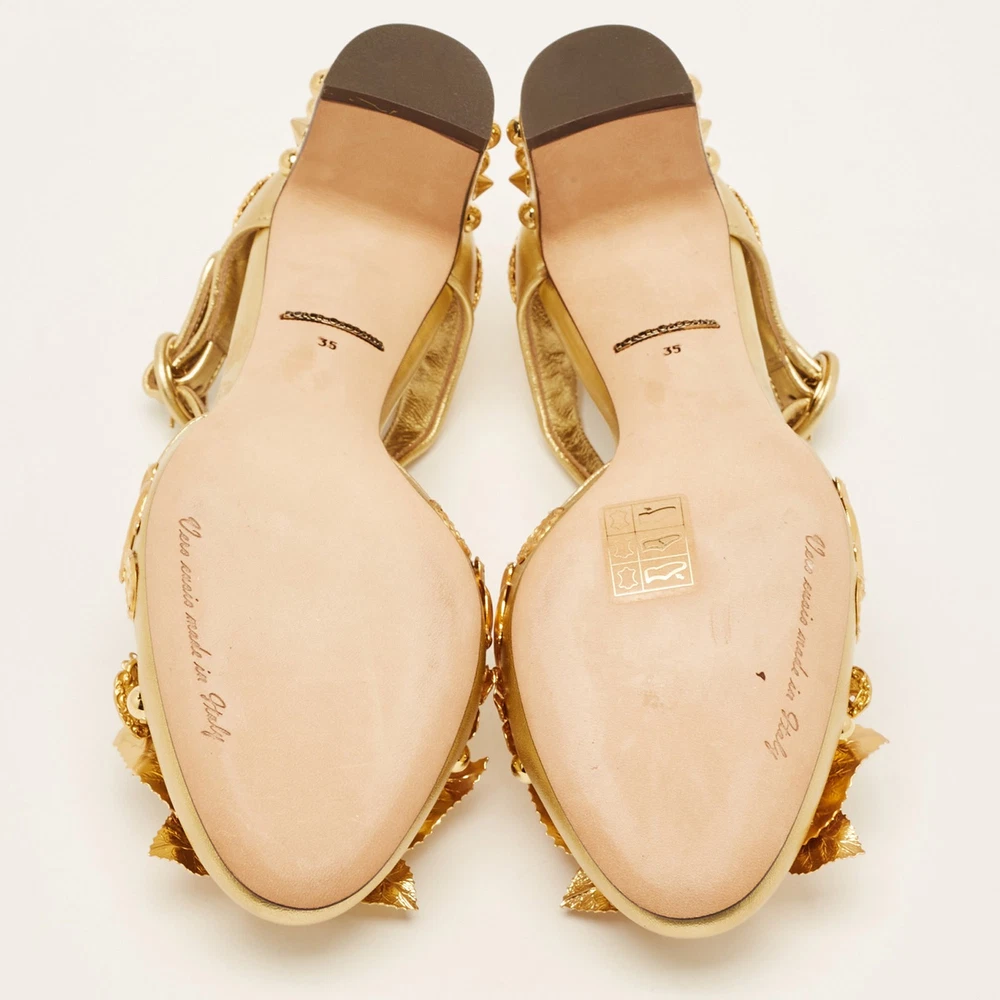 Charlotte Olympia Metallic Leather and Lurex Fabric Ankle Strap Sandals Size 385