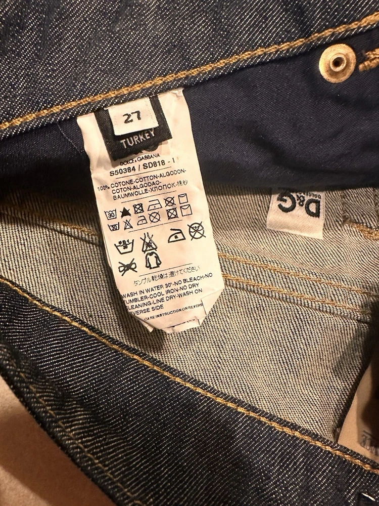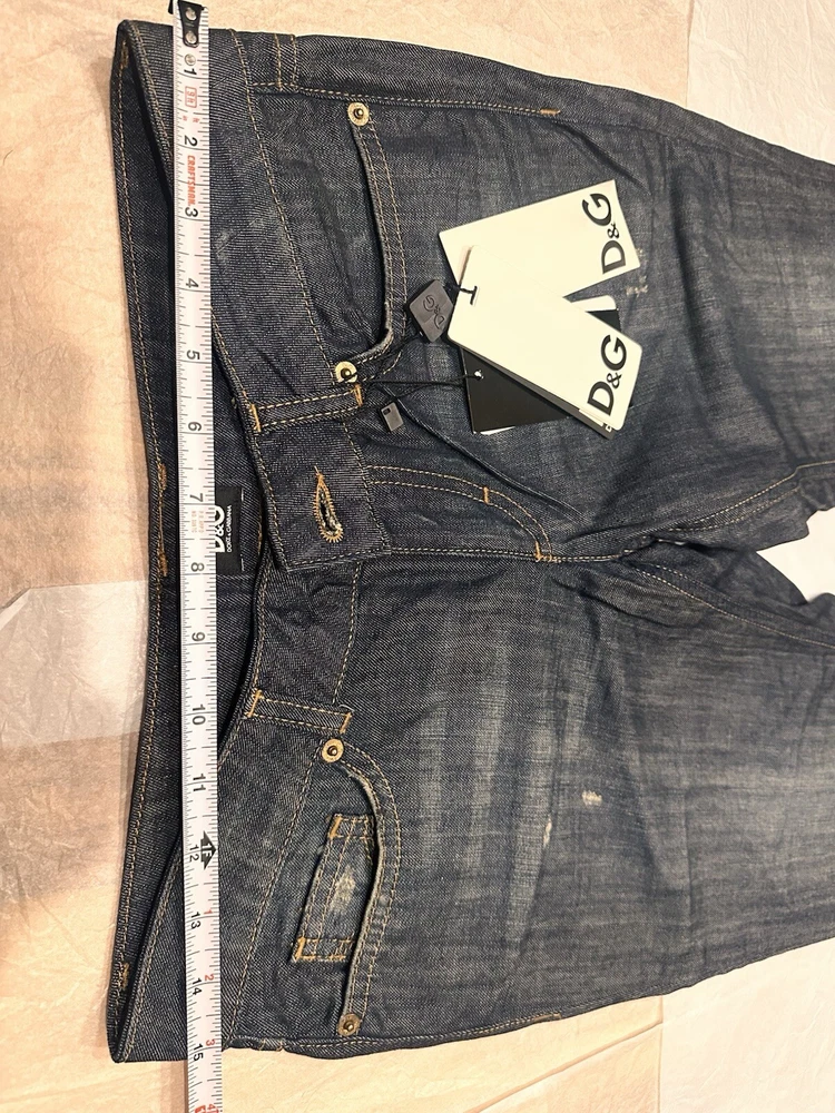 Elevate your denim collection with these stylish Dolce & Gabbana jeans. Made in Turkey from high-quality denim fabric, these jeans feature a medium wash and a solid pattern, perfect for a casual day out. The jeans have a low rise, wide-leg style, and a regular fit, making them comfortable and flattering for any body type. The closure includes both a zip and button, with accents like a logo and a zipper. These vintage-inspired jeans are perfect for the 90s theme and are suitable for both summer and spring. The waist size is 30 inches, and the inseam is 35 inches, making them a great addition to any wardrobe.