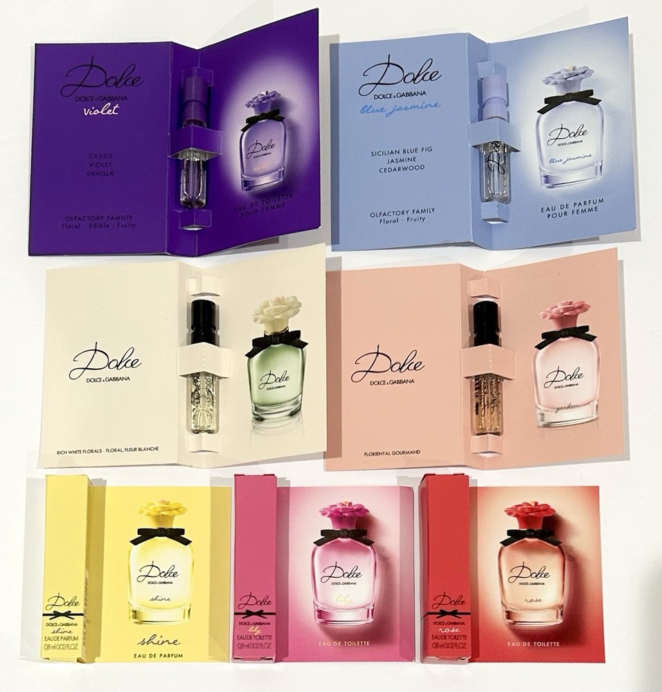 Dolce & Gabbana 8pc Dolce Perfume Sample Vials •Brand New Unused. •Included: - Dolce & Gabbana Lily EDT 0.8ml - Dolce & Gabbana Peony EDP 1ml - Dolce & Gabbana Shine EDP 0.8ml - Dolce & Gabbana Rose EDT 0.8ml - Dolce & Gabbana Garden EDP 1.5ml - Dolce & Gabbana violet 1.5ml - Dolce & Gabbana Blue Jasmine EDP 1.5ml NOTE : Manufacturers do not fully fill up the sample vials!i