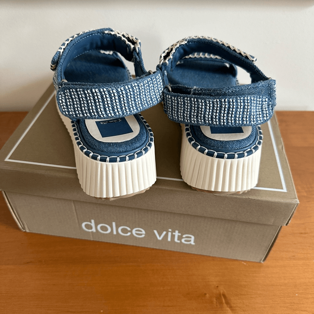 The elevated, on-the-go sandal. DEBRA pairs a cool, modern platform sole with velcro straps, creating the perfect go-anywhere, do-anything look. Comfy and current, we can't wait to hit the streets in these. Textile Upper Recycled Synthetic Outsole Water-based Leather Alternative Sock + Lining 2.3" Platform Height Imported