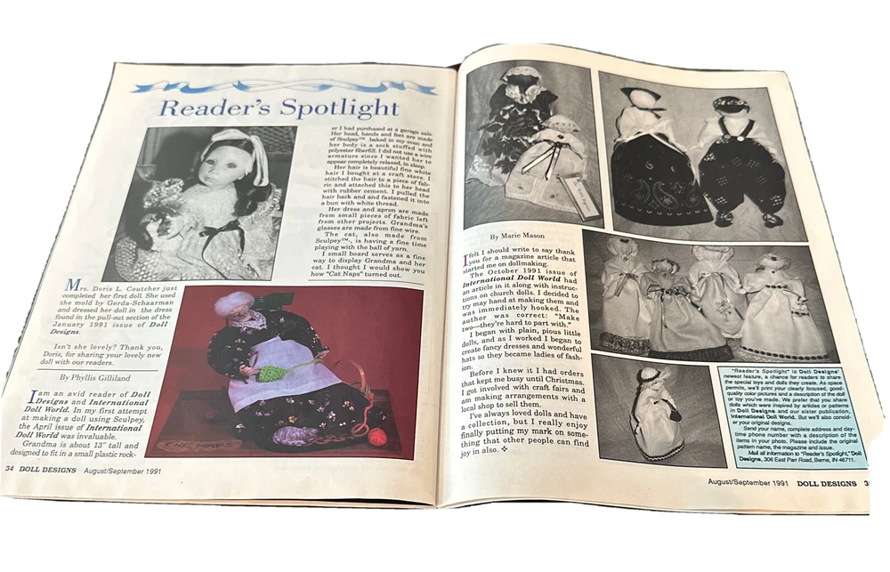 Doll Designs September 1991 Vintage Magazine “Top Off Your Dolls In Style"