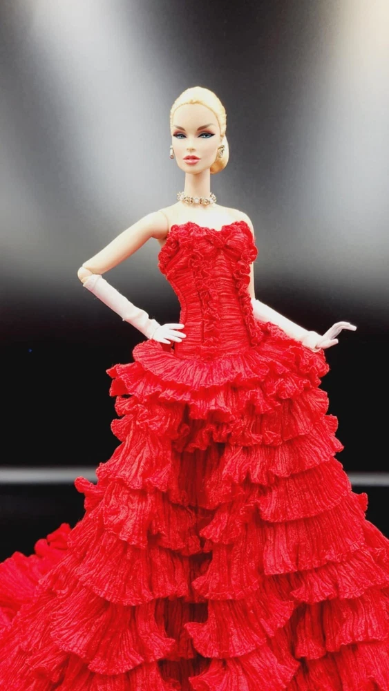 1. When t.d.fashiondolls has an unannounced 'sale', I jump at the chance to get a beautiful fashion at an unreal low price. This dress does not disappoint. It is lovely, well tailored and sewn properly. I always check to see if one of these 'sales' pops up when I'm on Ebay. Shipping was quite fast, packaging was neat and tidy, and the dress was identical to the one pictured.