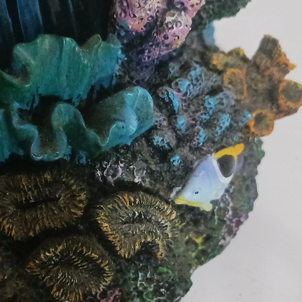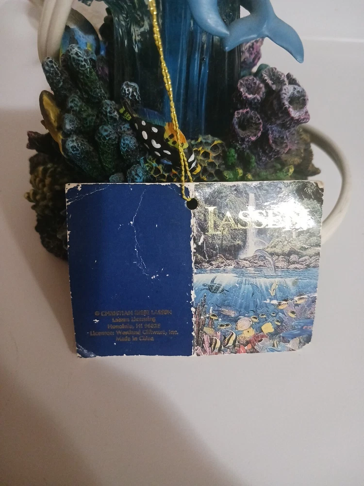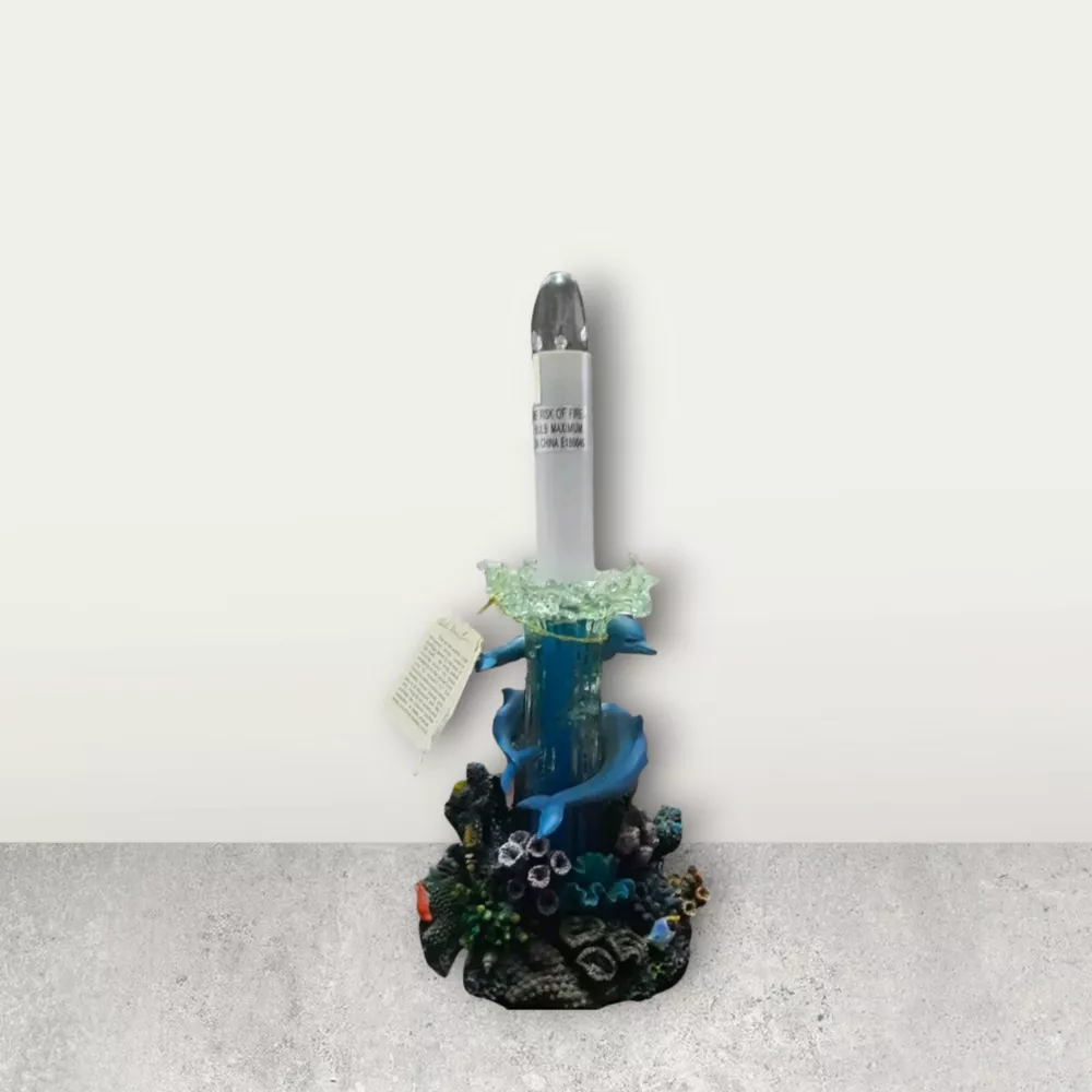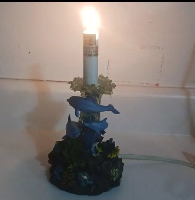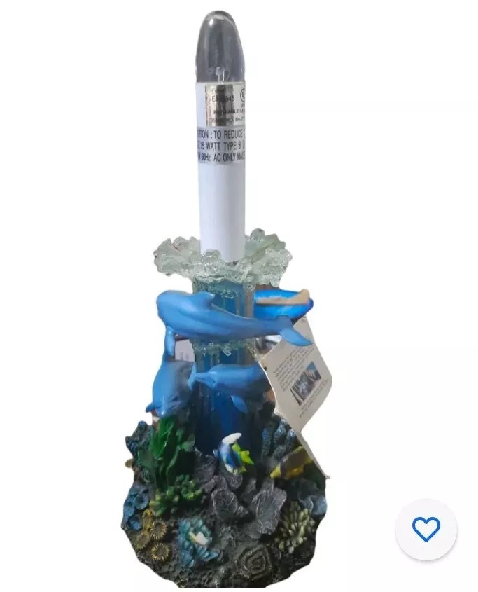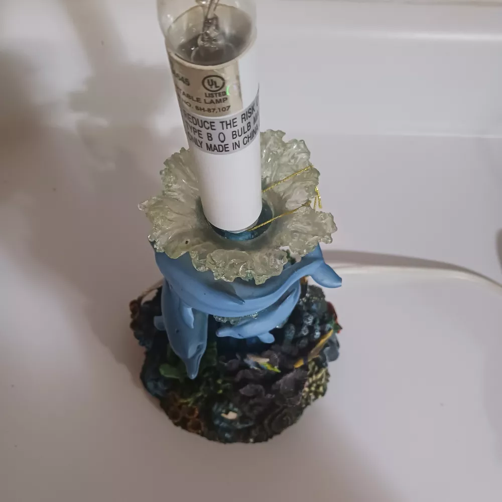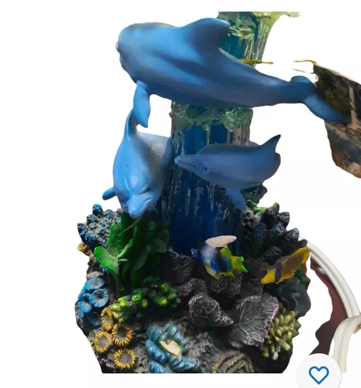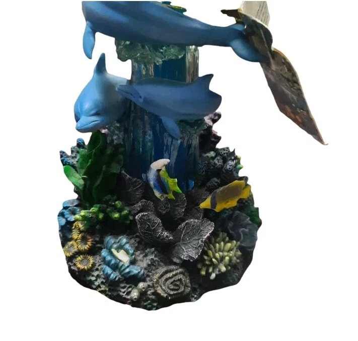 Smoke-free petfree packed with care Sculptured Dolphin Art Lamp. 10 inches tall no chips New with tag Uses nightlight bulb sealife dolphins, fish and vegetation Tested