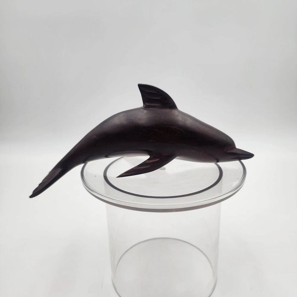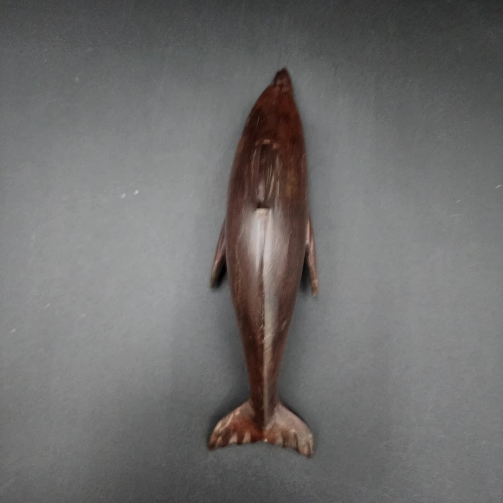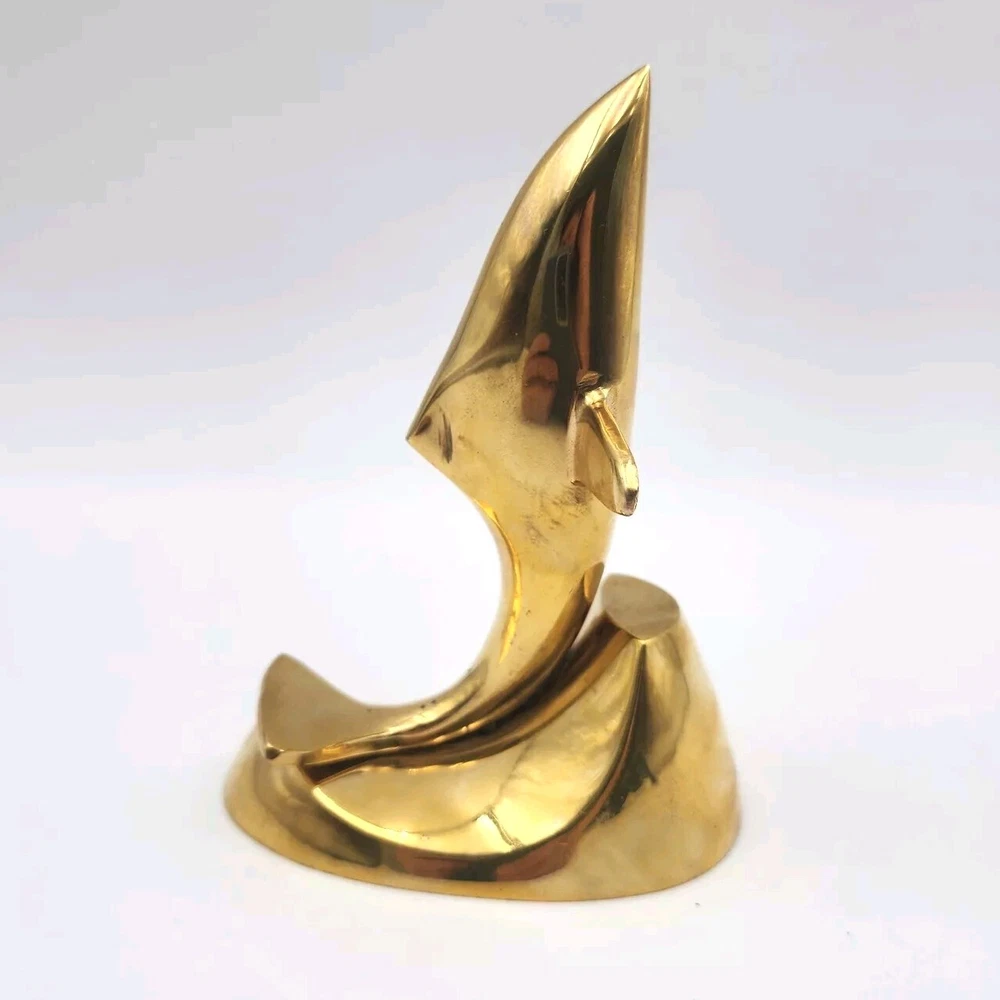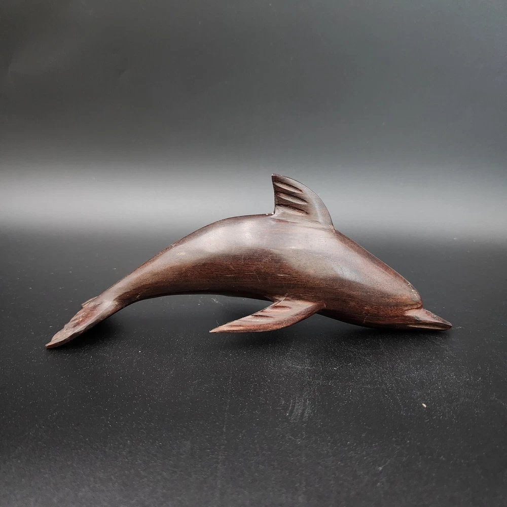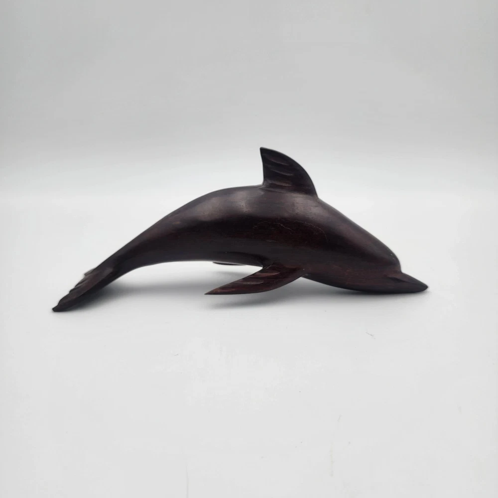 Brass dolphin weighs 14 oz, measures 2"x4"x5"H Wood dolphin weighs 1.8 lb, measures 9"Lx3.5"D