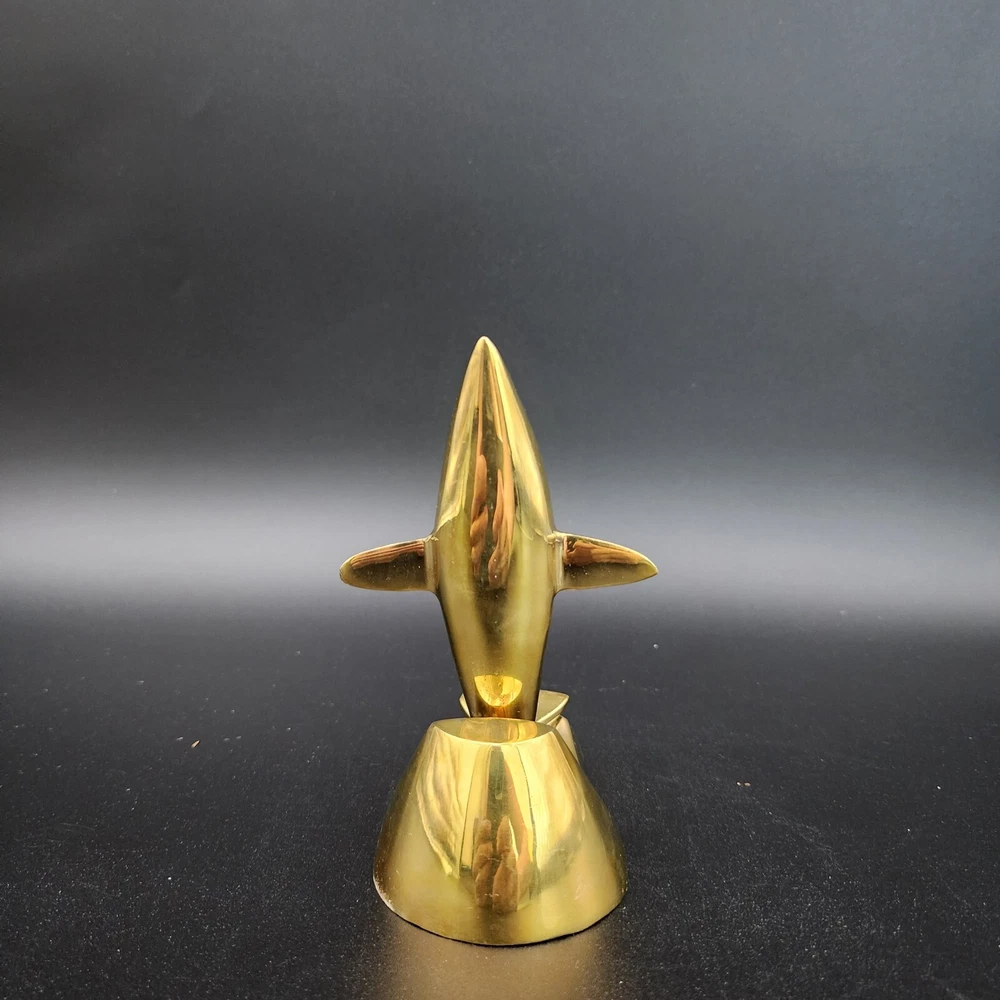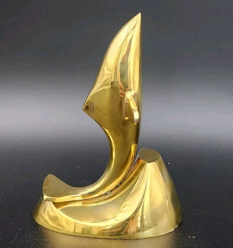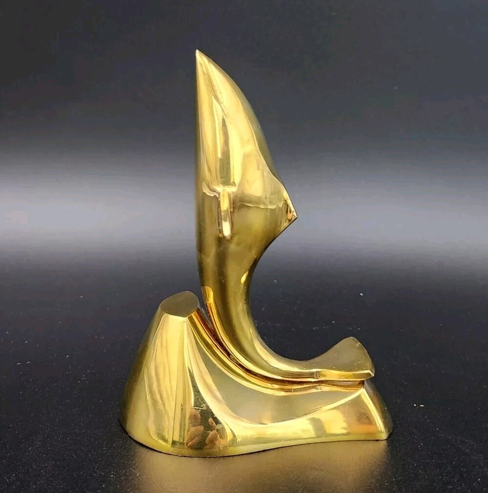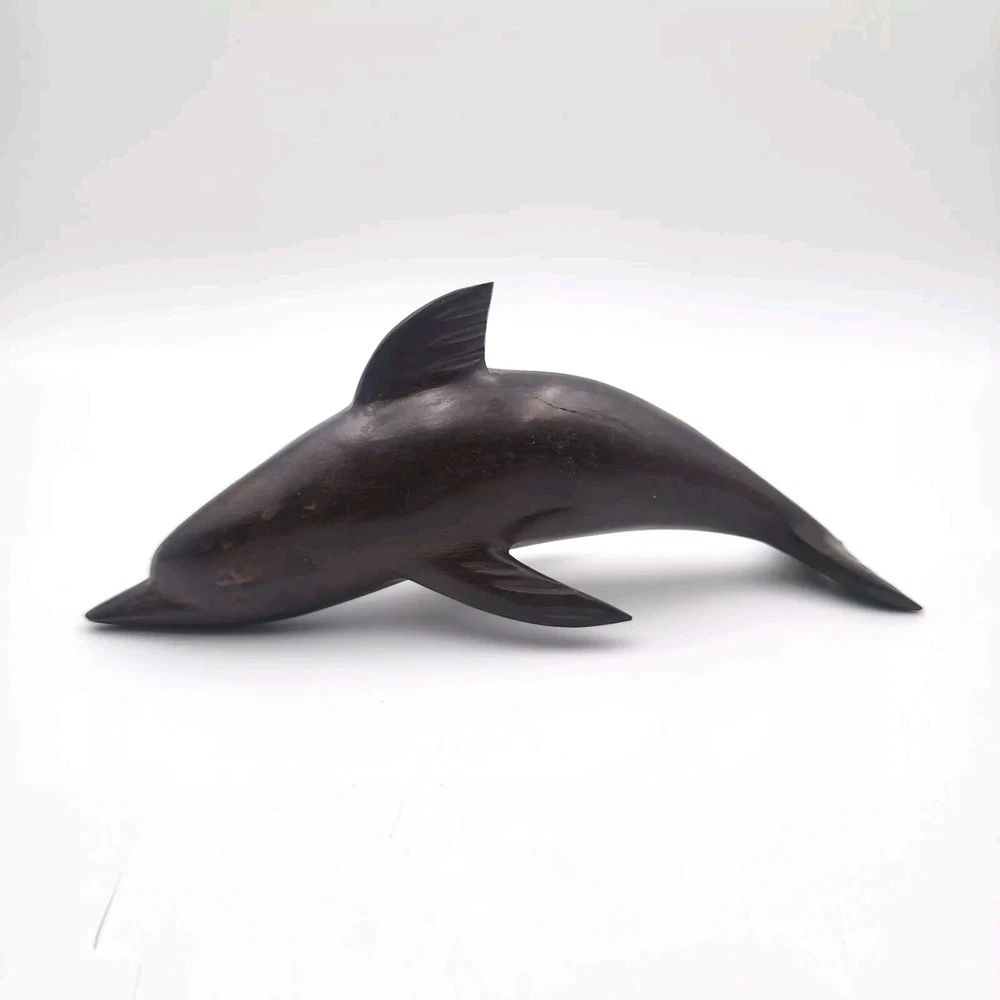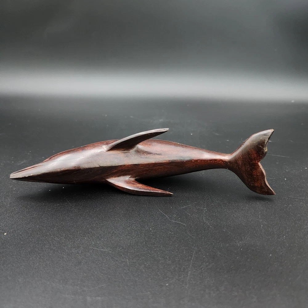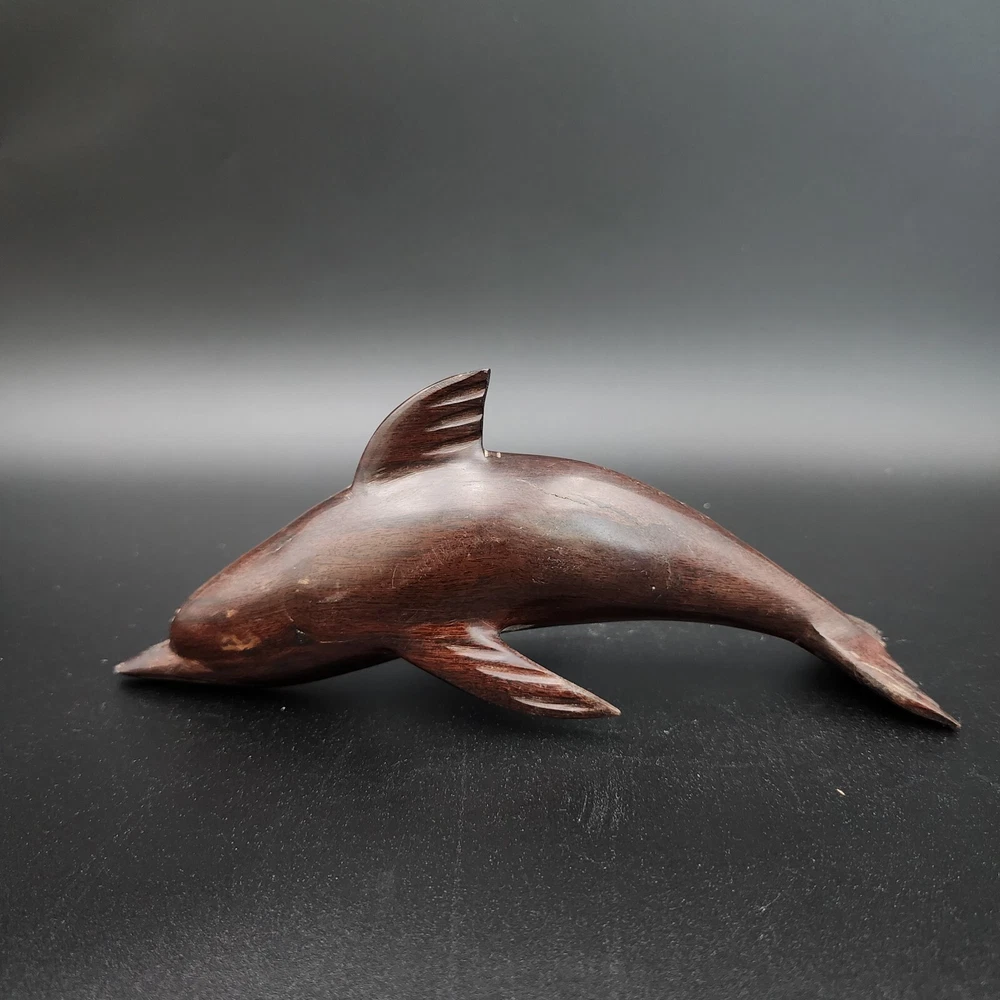 Brass dolphin weighs 14 oz, measures 2"x4"x5"H Wood dolphin weighs 1.8 lb, measures 9"Lx3.5"D
