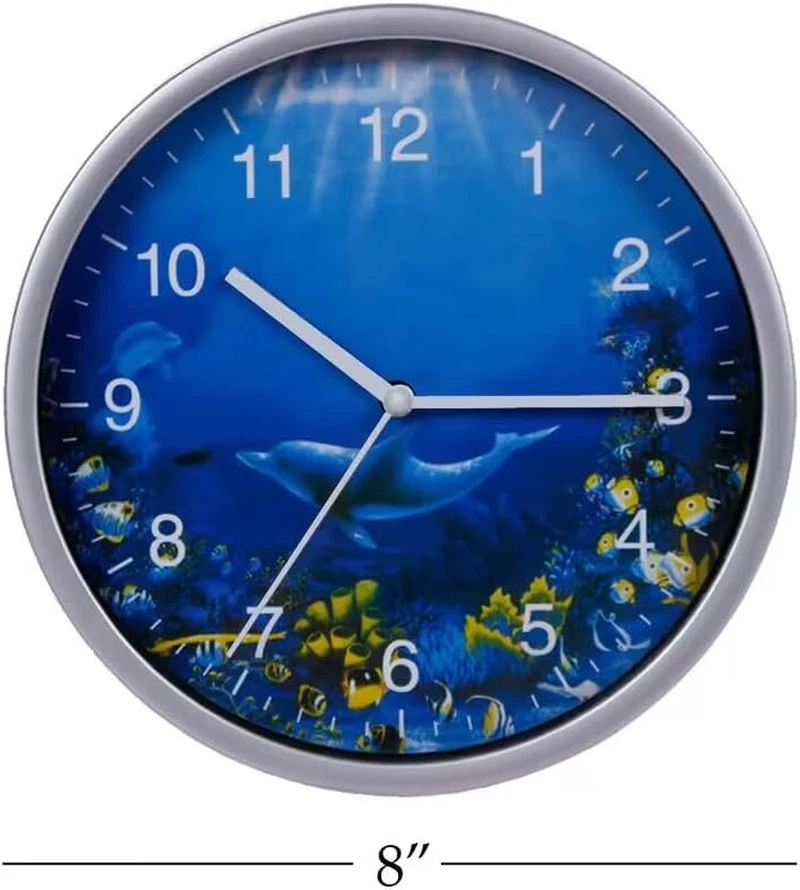 Store New Arrivals Add to Favorite View Feedback Dolphins Wall Clock 8 Inch Silent Non-Ticking Battery Operated Ocean Clock Easy to Read Description Style Art Deco Number of Items 1 Power Source Battery Powered Dial Color Dolphins Country of Origin China Operation Mode Atomic Are Batteries Included No Room Type bathroom bedroom kid room kitchen Batteries required Yes Product Dimensions 7.87"W x 7.87"H Material plastic glass Watch Movement Quartz Frame Material Plastic Age Range (Description) Kid Alarm Clock No Number of Batteries 1 AA batteries required. Manufacturer Keygift Indoor/Outdoor Usage Indoor Item Weight 5.6 ounces Special Feature Silent Clock Display Type Atomic Mounting Type Wall Mount Color Dolphins Shape Round Batteries 1 AA batteries required. Brand Keygift Size 8" Dolphins ADORABLE WALL CLOCK: The wall clock comes with a silver frame and white aluminum hands, ocean theme with dolphins pictured as background SILENT NON-TICKING WALL CLOCK: Silent non-ticking mechanism with sweeping movement, allows you to rest in silence ACCURATE TIME: Precise quartz movements assure accurate time EASY TO USE: The Silent wall clock is operated by 1x AA battery(not included) and it comes with a keyhole bracket on back - ready to hang; Hard plastic frame mounted with glass making it easy to clean and keeps dust away MEASUREMENT: Diameter 8 inches, Thickness 1.5 inches Product Description Bring the ocean to your home Color: Blue/Silver You don't have to live anywhere near an ocean to embrace beach chic style in your home. Beach chic style is simply an aesthetic inspired by the casual, cool lifestyle of living near the water. With the right color palette, lighting, and textures, your space can feel like it's steps away from the sand too. The ocean clock will transform your home into an oasis of serenity and relaxation. Clear blue shades have a soothing effect on the body and promote regeneration and concentration. In a house, blue creates a serene atmosphere and serves as a reminder of the association with water, the element of life. Discover peaceful and fresh feeling for your home now. Description: Size: 8"Dia x 1.5"Deep Material: Plastic frame, Plastic mechanism housing, Aluminum clock hands and Glass Cover Power Source: 1 x AA battery (Excluded) Packaing includes: 1x 8" wall clock Silent non-ticking mechanism Easy to read Ready to hang Bathroom Kids room Kitchen Decorative ocean clock • The clock comes with a silver frame and white aluminum hands, marine theme with dolphins pictured as background, making it a beautiful wall clock. • High quality non-ticking movement, absolutely silent. • Precise quartz movements assure accurate time. • Keyhole bracket on back, ready to hang. • Perfect for housewarming gift, holiday gift, Christmas gift etc; Suitable to be placed in kid’ room, school, office, kitchen, classroom, bathroom. • Sturdy package assures the clock in a good condition during transportation. • Strict pre-shipping inspection for every clock before shipping. ABOUT US We offer the best prices around on high quality products. Our E-store includes media such as books, movies, music and games while offering electronics, toys, sporting apparel, clothing, tools, general home, garden items and more. SHIPPING We are always working hard to ensure your package arrives as soon as possible. Please understand that some factors like weather, high postal traffic, and the performance of shipping companies are outside of our control. We offer free shipping to the lower 48 states and ship within 2 business days of payment, usually sooner. We do not accept P.O. Boxes. Please provide a physical address. RETURNS We offer a 30-Day Return Policy on items which you are not completely satisfied with. You have the option for a full-refund or an exchange of the item. No returns are available on items shipped outside of the USA. PAYMENT We accept PayPal. CONTACT US This page content is yet to come Please ad us to your favorite seller and visit again later Thank You