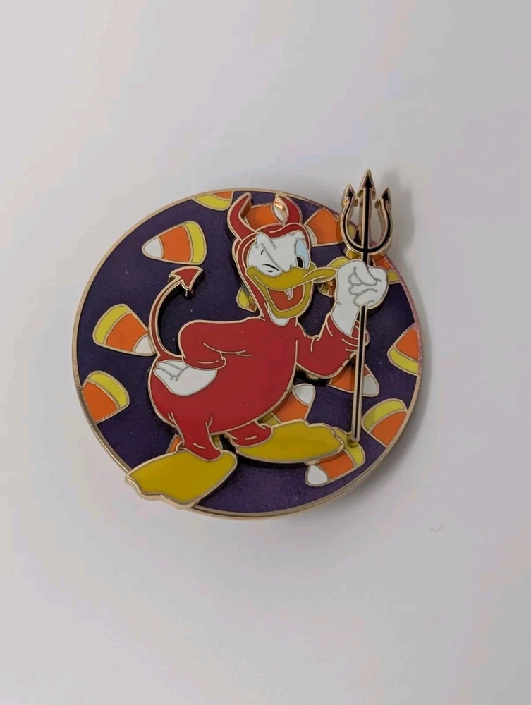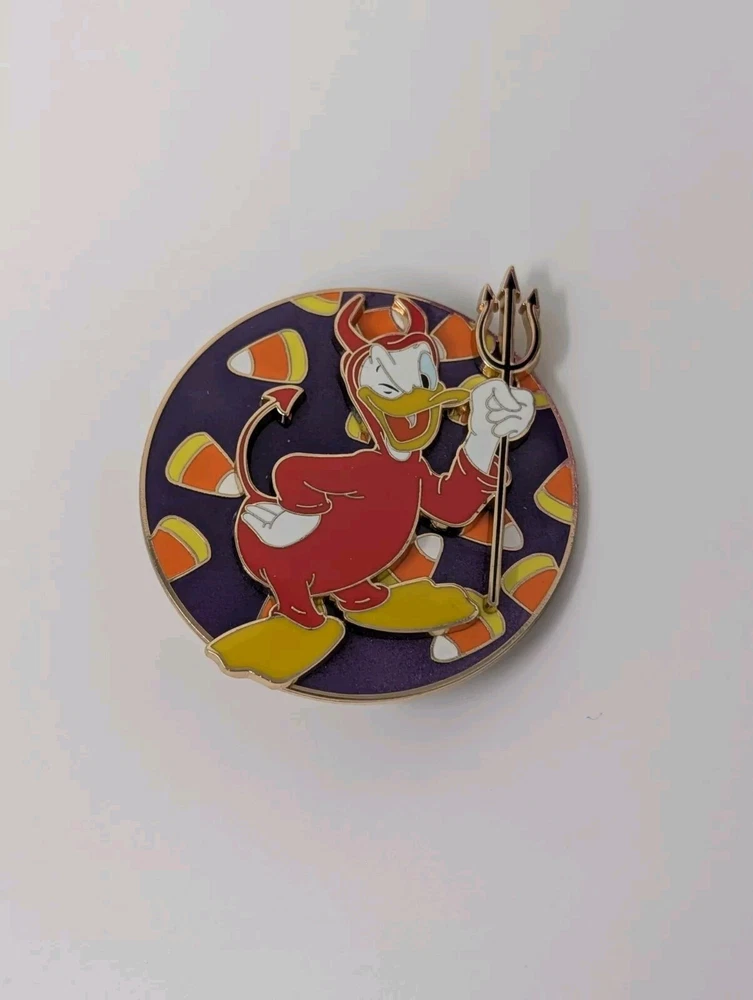PIN ONLY We do not combine shipping Get your hands on this limited edition Donald Duck Devil Candy Corn Halloween pin from the Disney Studio Store Hollywood. The pin features the iconic character in a spooky setting, perfect for any Disney fan's collection. This exclusive pin is a must-have for any collector looking to add a unique piece to their collection. The pin is made by Disney and is an authentic piece of Disneyana. The pin is perfect for Halloween or any other occasion and is a great addition to any pin collection. The pin is made with high-quality materials and is designed to last. Don't miss your chance to own this unique piece of Disney history.