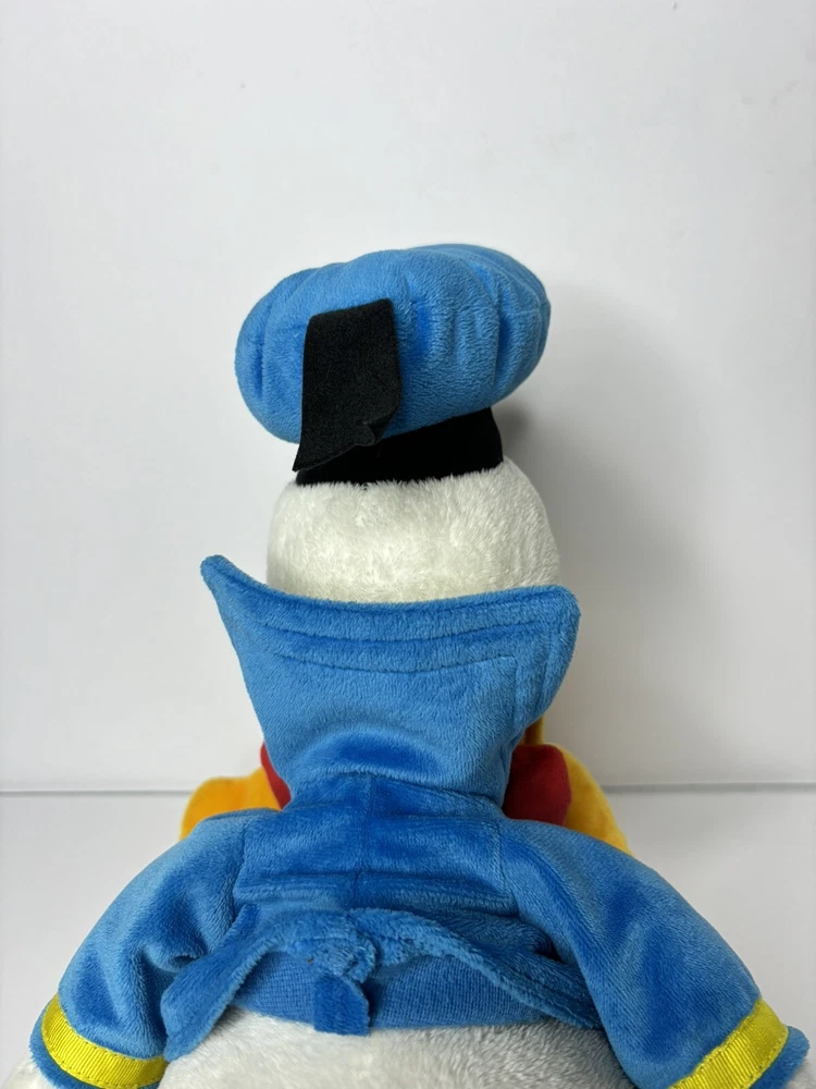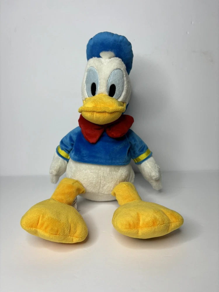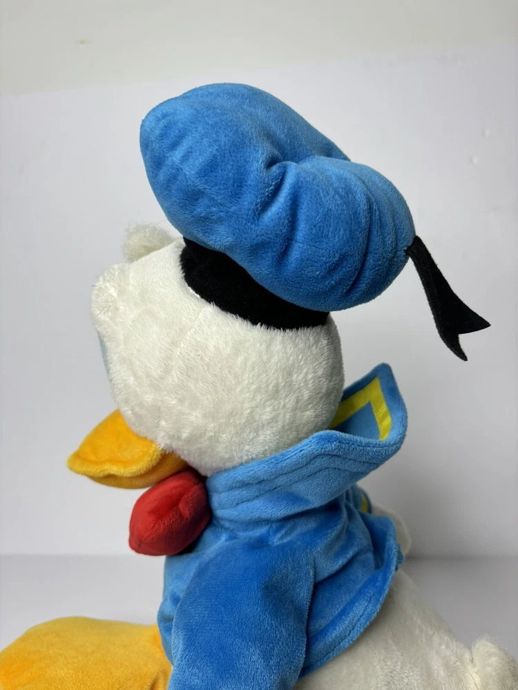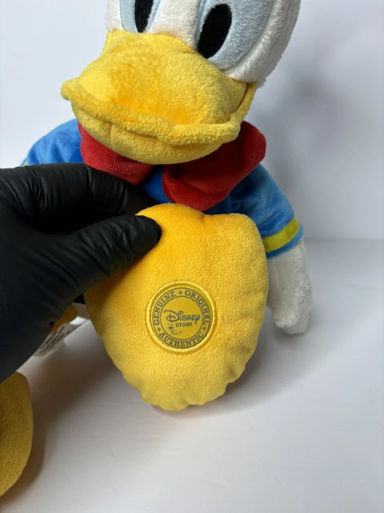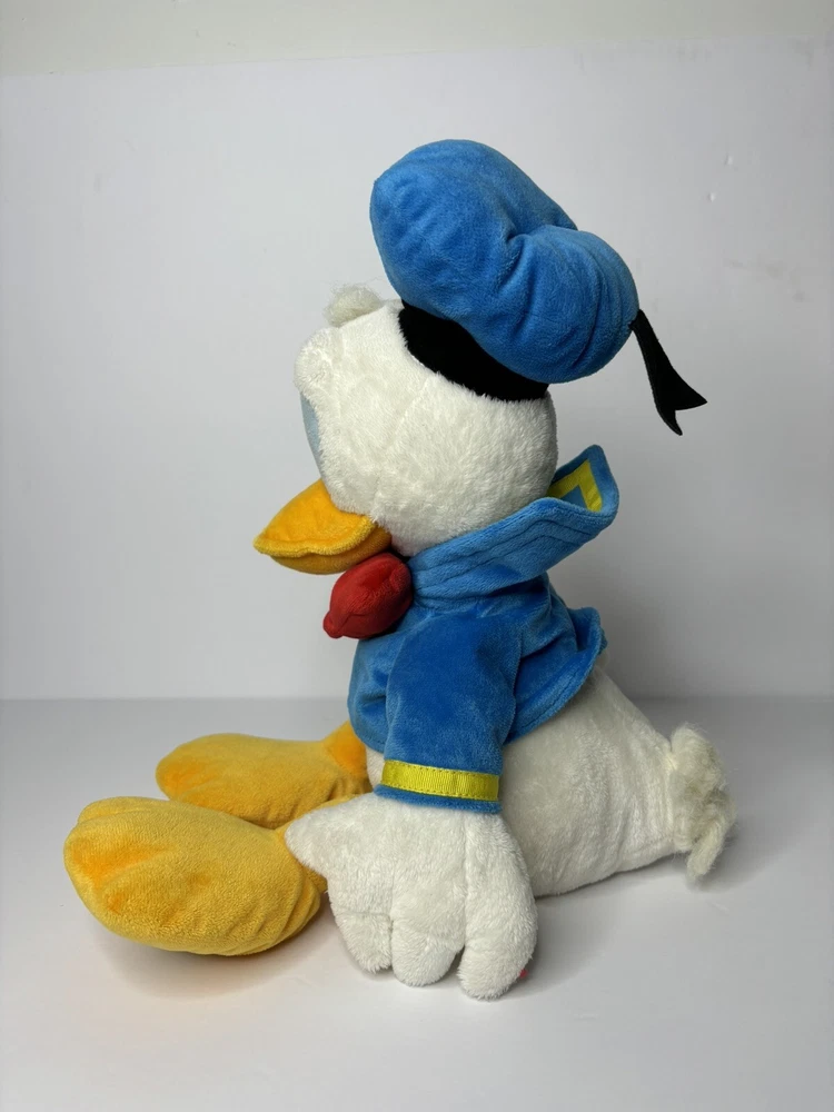 Bring home the magic of Disney with this exclusive 18" Donald Duck plush from the Disney Store. This retired plush toy features the beloved character in his classic pose and is made with high-quality materials for lasting durability. Perfect for collectors and fans of all ages, this plush toy is a must-have addition to any Disneyana collection. Made in Vietnam and featuring the iconic Donald Duck character, this plush toy is sure to bring joy to any fan of the franchise. Don't miss your chance to add this rare item to your collection!