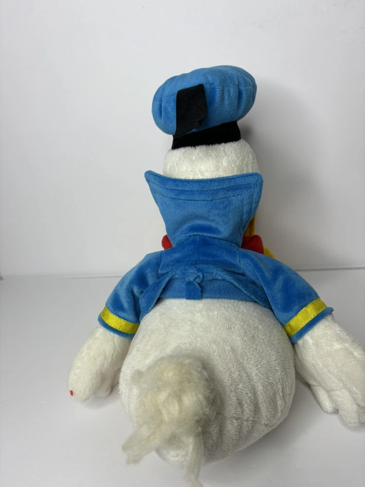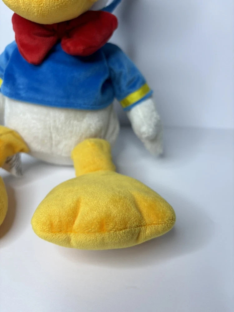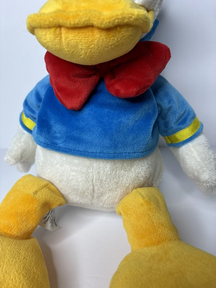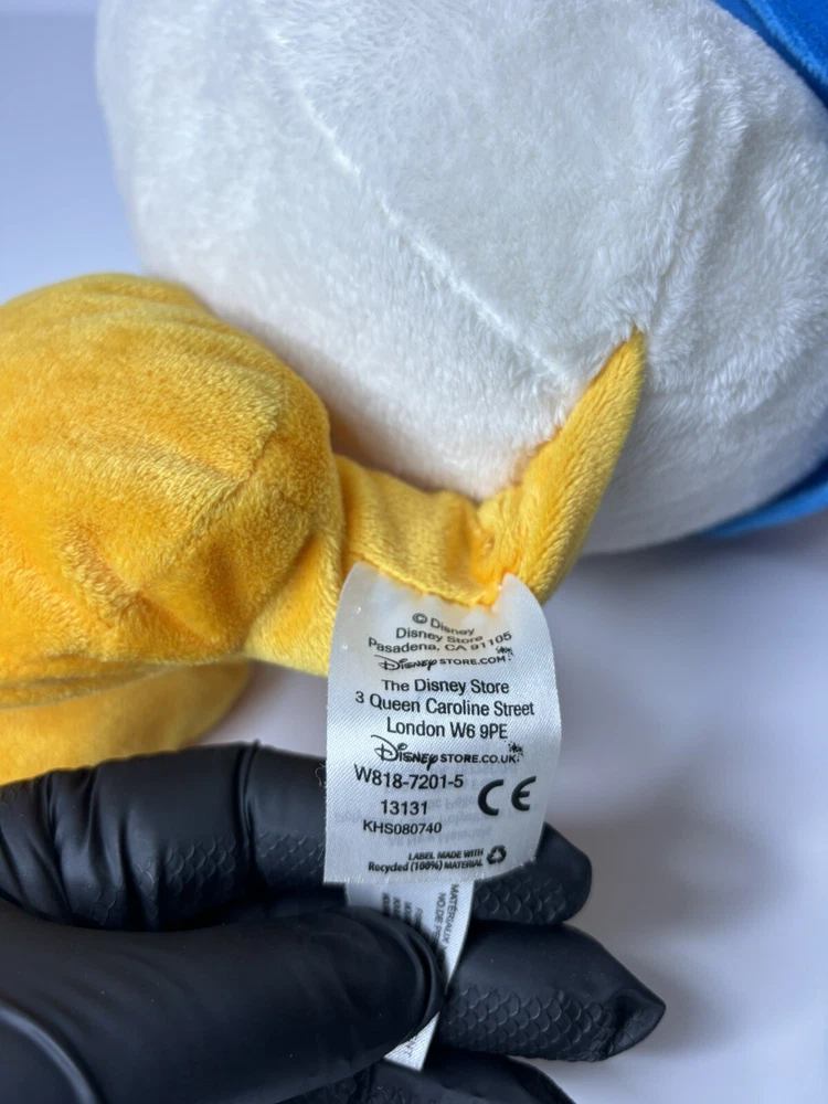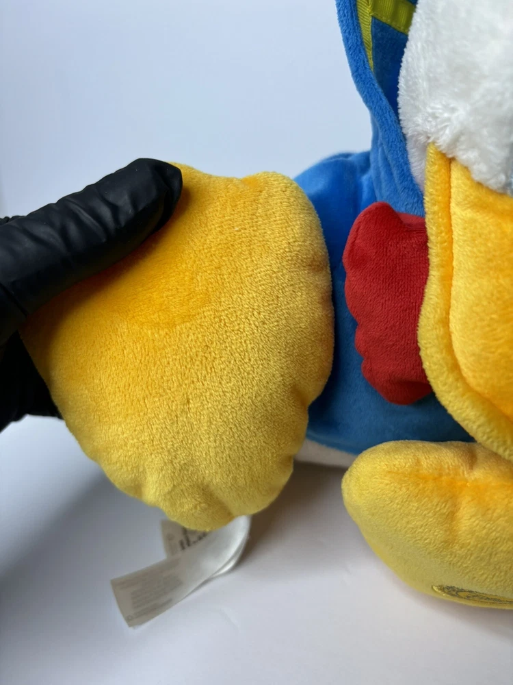 Bring home the magic of Disney with this exclusive 18" Donald Duck plush from the Disney Store. This retired plush toy features the beloved character in his classic pose and is made with high-quality materials for lasting durability. Perfect for collectors and fans of all ages, this plush toy is a must-have addition to any Disneyana collection. Made in Vietnam and featuring the iconic Donald Duck character, this plush toy is sure to bring joy to any fan of the franchise. Don't miss your chance to add this rare item to your collection!