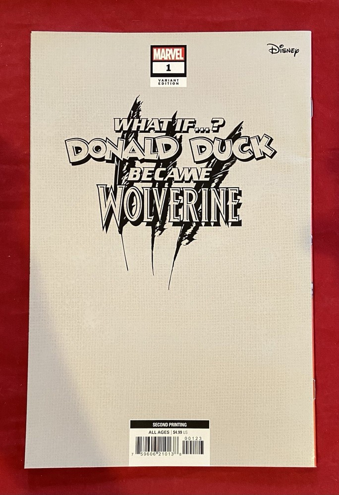 What If Donald Duck Became Wolverine #1 2nd Print 1:25 Skottie Young Variant VF. This is a rare 2nd print 1:25 variant. The book has some spine ticks and has some wear at the top of the front cover. Please look at all of the pictures. Includes FREE shipping in the United States.