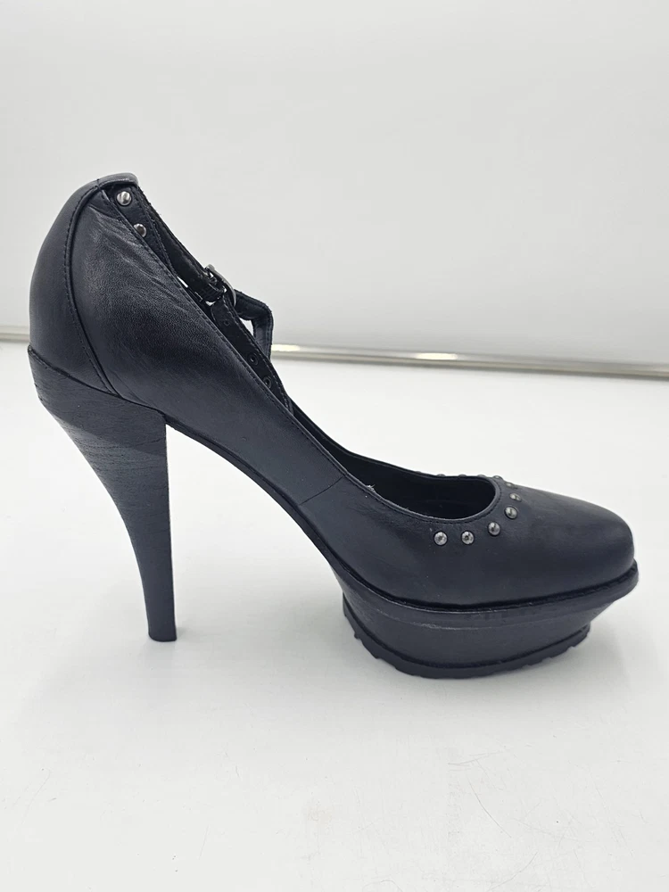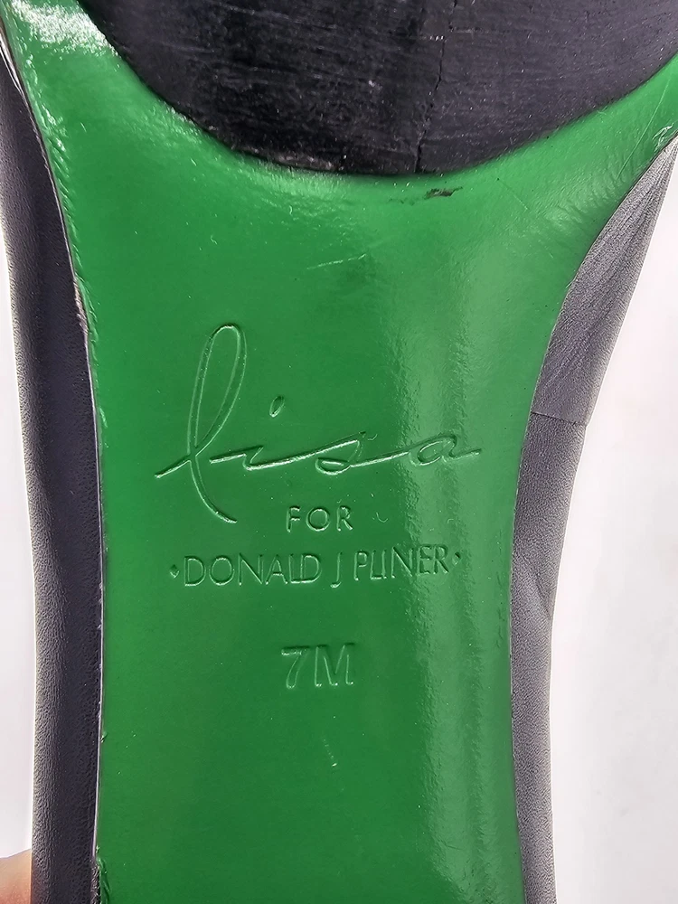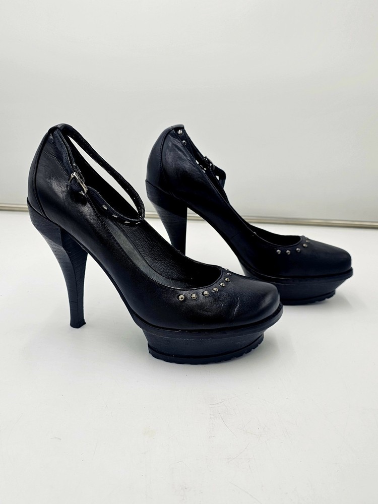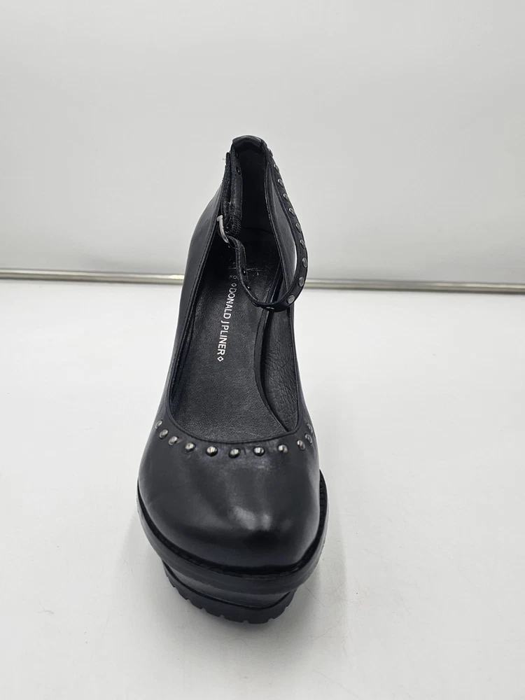 Upper Material: Leather Type: Heel Color: Black Accents: Studded Toe Shape: Closed Toe US Shoe Size: 7 Character: Marie Style: Platform Features: Ankle Strap Department: Women Brand: Donald J. Pliner Heel Height: Ultra High (4 in & Higher)