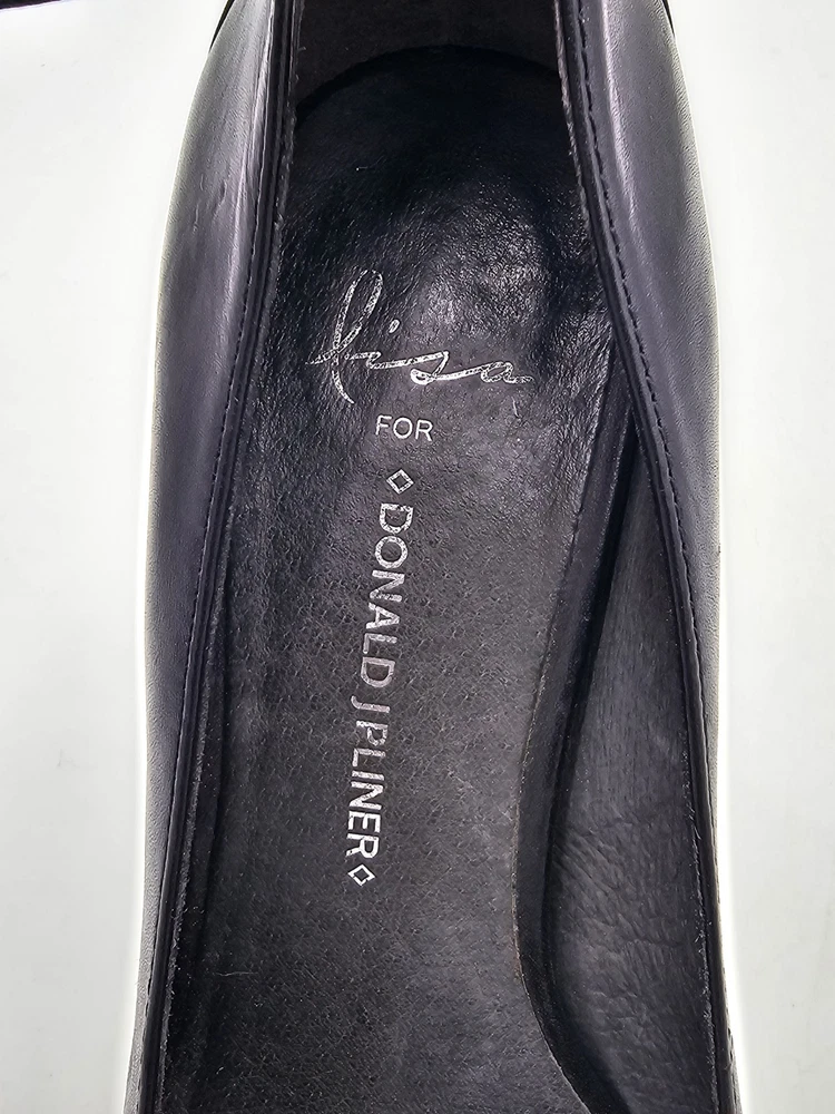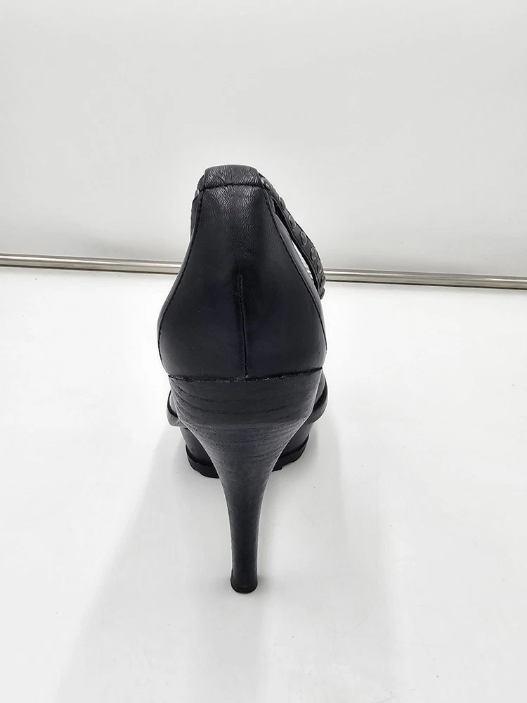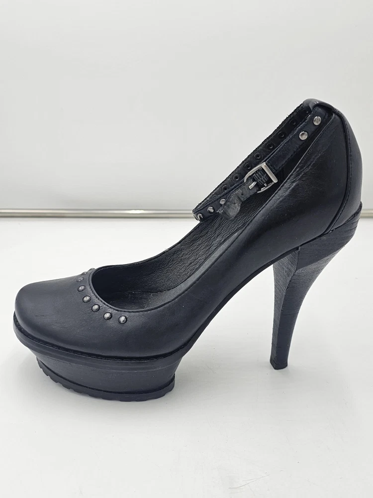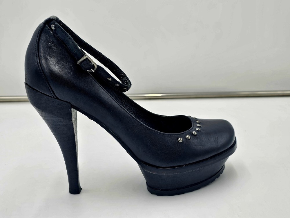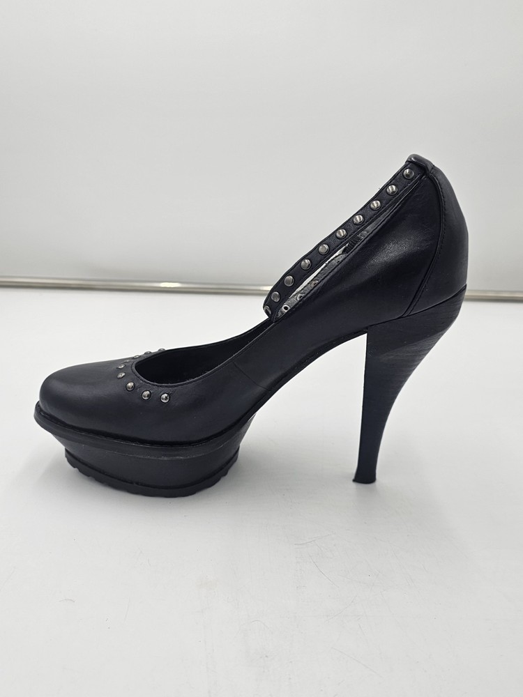 Upper Material: Leather Type: Heel Color: Black Accents: Studded Toe Shape: Closed Toe US Shoe Size: 7 Character: Marie Style: Platform Features: Ankle Strap Department: Women Brand: Donald J. Pliner Heel Height: Ultra High (4 in & Higher)
